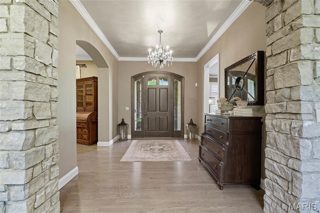 OPEN Sun 10/19, 12-2PM. Exquisite 1.5-story home in sought-after Country Lake Estates blends timeless elegance with modern luxury. The main floor offers custom refinished wood floors, Hunter Douglas wood shutters & custom stone accents. Main floor living spaces including a formal dining room, executive office with French doors, family room with gas fireplace & 200-year-old custom wood beam ceiling & mantle, large eat-in kitchen with granite, double ovens & gas cooktop, butler's pantry with ice maker, wine fridge & prep sink, vaulted hearth room & four-season room with Sonos sound. Primary suite boasts power window coverings, soaring ceilings, two walk-in closets & en suite bath with dual vanities & separate tub & shower. Upstairs features a lofted living space & 3 nicely-sized bedrooms, 2 of which share a Jack and Jill bath & 1 en suite. The walkout lower level is made for entertaining & includes several living spaces, wet bar, stone fireplace, full bath & additional 5th bedroom or second office. Step outside to your private resort-style retreat featuring a Pebble Sheen saltwater pool, HotSprings hot tub, natural stone fireplace with custom copper top, Illinois Glacier stone patio & outdoor family room with TV, lighting, fan & Sonos outdoor sound system. The exterior is fully maintenance-free with new landscaping, a new roof (2025), sprinkler system, cool deck, natural stone retaining wall & extensive LED lighting. The rear of the property backs to the 5-acre community lake.