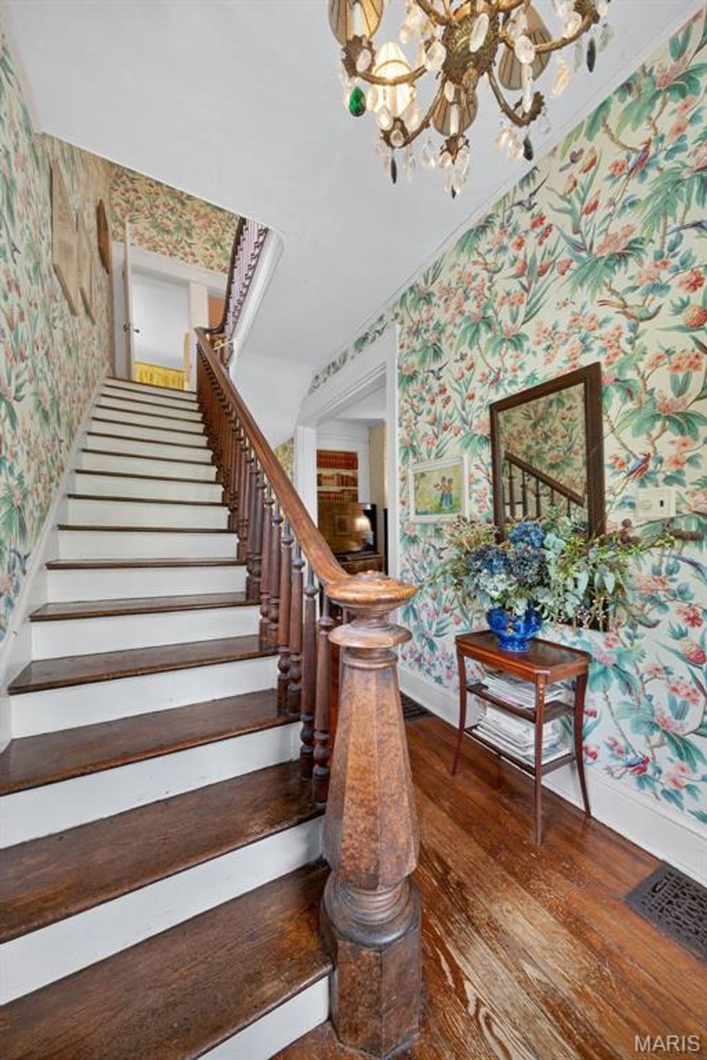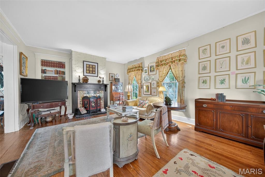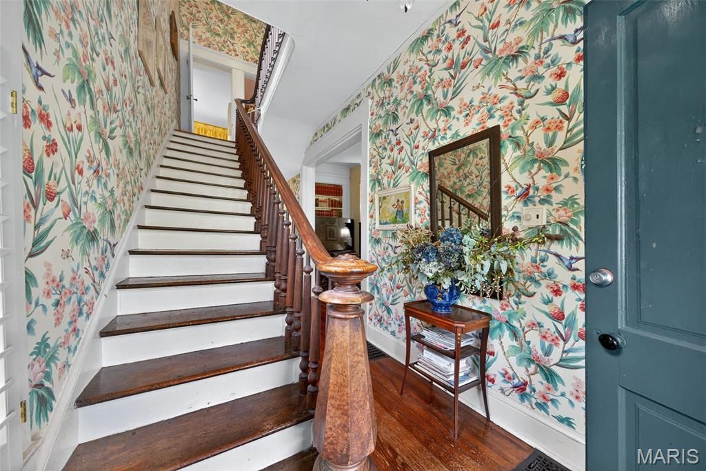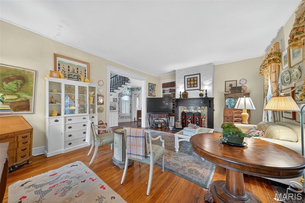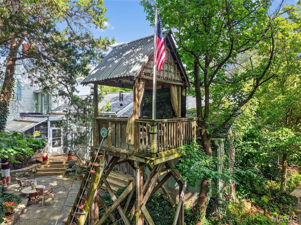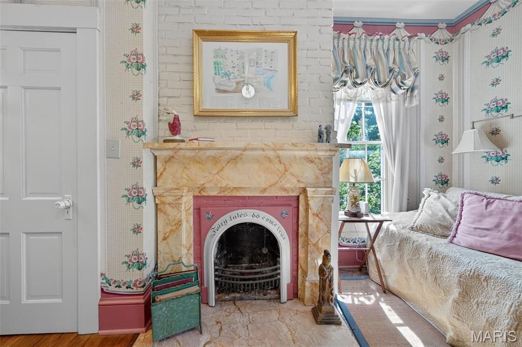 In the heart of Kirkwood's East Monroe Historic District, this 3-bedroom, 1.5-bath home offers over 2,000 sq ft of historic charm and unforgettable gardens "” all within walking distance to the shops, dining, and energy of downtown Kirkwood.Featured multiple times in Better Homes & Gardens, Mary Engelbreit's Home Companion, and the St. Louis Post-Dispatch, the home and gardens have been celebrated nationally for their beauty and character. The garden, lovingly designed and maintained over decades, is a true neighborhood landmark "” with thousands of rare daffodils, specimen magnolias, meandering brick pathways, a waterfall pond, and even a whimsical treehouse retreat. Inside, timeless details abound: original wood floors, antique crystal chandeliers, French doors, hand-silkscreened Brunschwig et Fils wallpapers, and a fireplace surround crafted from antique English majolica tiles. The kitchen blends history and artistry with travertine marble floors, hand-painted cabinets, and a Delft-tile backsplash. A light-filled greenhouse connects seamlessly with the living spaces, offering year-round garden enjoyment and room to dream. Upstairs, the original clawfoot tub and built-in bedroom retreat add one-of-a-kind character. This is more than a home "” it's a Kirkwood icon, offering the rare chance to own a property where history, artistry, and community come beautifully together, with endless possibilities to add your own touch.