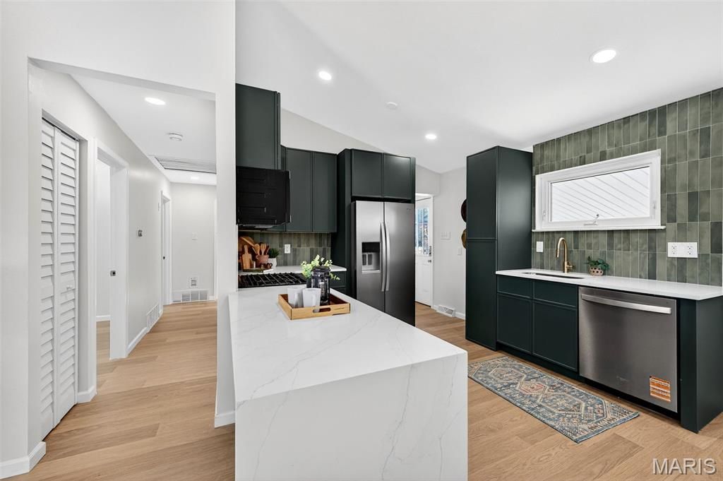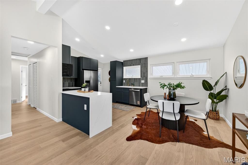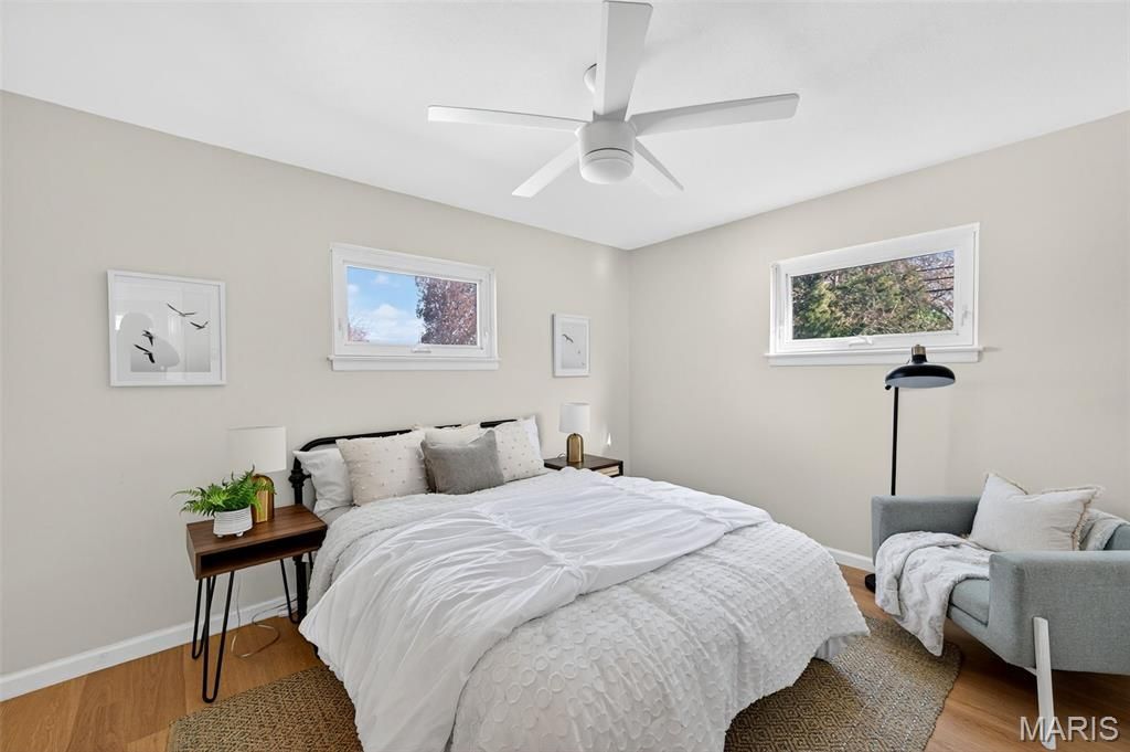 WOW!! Completely renovated inside and out, this beautifully updated home is truly move-in ready. Originally designed by renowned Saint Louis architect Ralph Fournier, Father of "Suburban Modernism" this home showcases his signature mid-century craftsmanship and thoughtful architectural details. Exterior upgrades include NEW roof, extensive landscaping, new driveway and retaining wall. Inside, you'll find new flooring, new HVAC system, new water heater, updated electrical, plus a STUNNING new kitchen and bathrooms. The open floor plan features beautiful hardwood floors, allows for TONS of natural light, and a vaulted ceiling that enhances the home's inviting and spacious feel. At the heart of the home sits your fully renovated kitchen, designed to compliment the home's architectural roots while offering the convenience of modern living. Custom cabinetry, quartz countertops, designer tilework, and updated appliances create a clean, functional workspace ideal for both everyday meals and hosting. The kitchen opens directly to the main living spaces, reinforcing the easy, relaxed flow that defines mid-century design. The lower level expands your living space with a generous family room, a new half bath and a large unfinished area ideal for laundry and additional storage. A fenced backyard with a new patio provides a perfect outdoor retreat. This thoughtfully renovated home combines modern updates with comfortable living! Ready for its next owner to enjoy!
