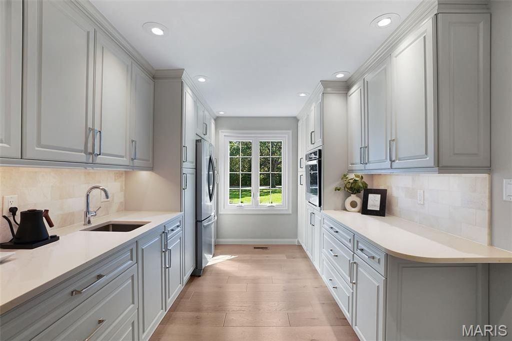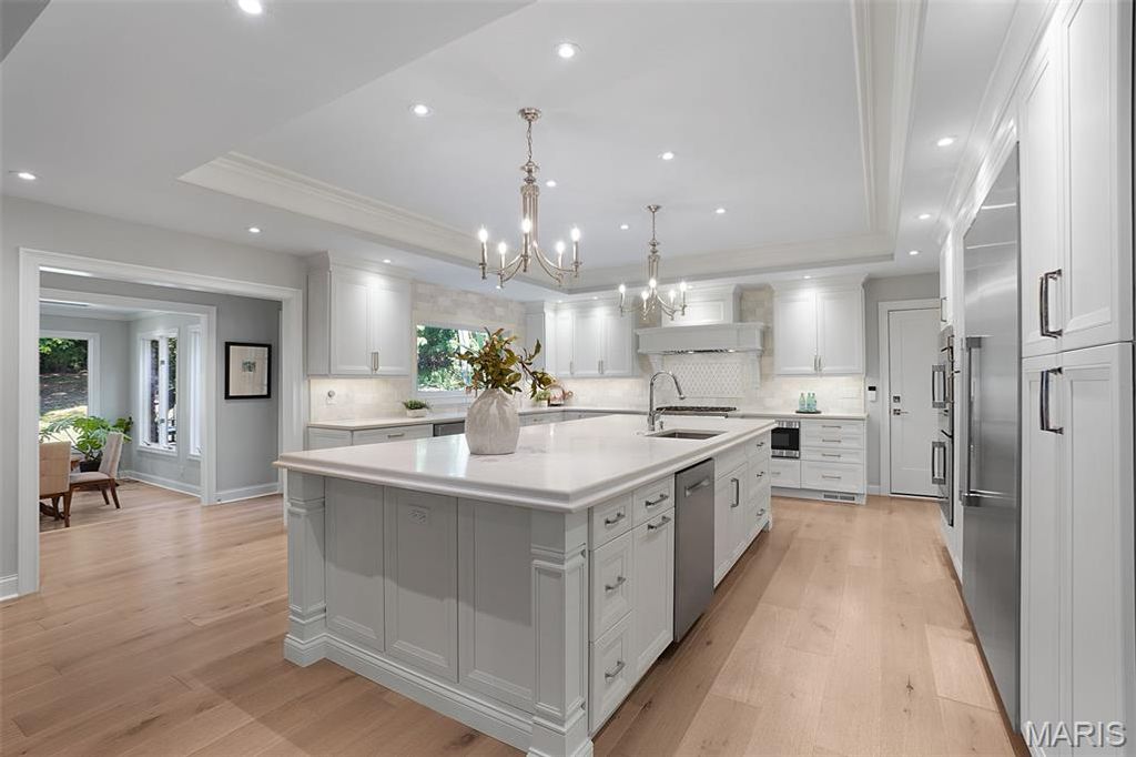 Welcome to 241 South Graeser Road, an exceptional residence within the top-ranked Ladue School District. Completely reimagined and essentially rebuilt in 2023, this home blends modern luxury with timeless design and the privacy of a wooded retreat"”while being within 20 minutes of everywhere in St. Louis. Walls, staircases, and entire spaces were moved or rebuilt to create a refined, functional layout, including the relocation of a full bathroom and the main staircase. The state-of-the-art kitchen is a showpiece featuring one-of-a-kind custom cabinetry, a 5' x 12' classic quartz island with an overhang seating six, an oversized Thermador refrigerator with auto-opening doors, Thermador gas cooktop, Bosch double wall oven with side-opening doors, icemaker, and a second prep sink. The butler's kitchen offers additional custom cabinetry, quartz counters, and another wall oven for effortless entertaining. The master suite is a private sanctuary highlighted by a gas fireplace with a marble surround and custom mantle, a luxurious marble bath with floors and walls in marble, an extended double-sink custom vanity with a granite top, high-end lighting including automatic under-cabinet illumination, a soaking tub, walk-in shower, and a relocated window for natural light. The boutique-style custom closet features a center island with power and charging stations, and a hidden laundry area adds convenience without sacrificing design. This home includes four fireplaces: masonry gas fireplaces with floor-to-ceiling stone and custom mantles in the great room and sunroom, a marble-surround gas fireplace in the master suite, and a sleek biofuel fireplace in the Dark Room. The dining room features a swinging door to the butler's kitchen and a window seat overlooking the expansive front yard"”perfect for everyday meals and holiday celebrations. The Dark Room provides a warm, intimate space with its biofuel fireplace, dramatic lighting, and another inviting window seat. The sunroom impresses with a floor-to-ceiling stone gas fireplace, soaring coffered ceilings, and room for multiple seating or dining areas"”ideal for year-round enjoyment. Every system has been renewed, including all-new wiring, plumbing, and lighting fixtures, plus a new subfloor on the main level. Two new sump pumps with interior drain tile and an exterior French drain, a brand-new 35-year architectural shingle roof, and added attic insulation ensure comfort and efficiency. Exterior upgrades include a new composite deck with hidden walk-up basement access, expanded driveway, new irrigation system, and complete landscaping. Surrounded by 9 acres of woods and fronted by 5.5 acres more, the setting provides extraordinary privacy, with only one window offering a view toward another residence. Despite its seclusion, the location provides exceptional access to major highways, dining, shopping, hospitals, and top-rated schools. With its comprehensive redesign, impeccable craftsmanship, and serene natural surroundings, 241 South Graeser Road offers a level of luxury and livability that is truly one of a kind.