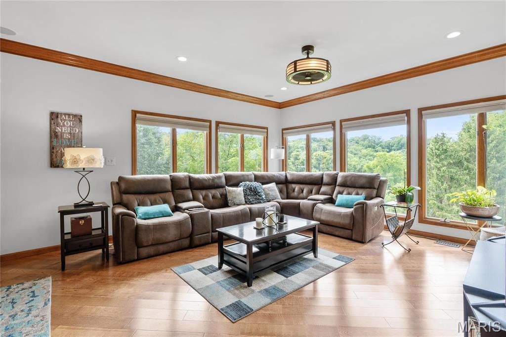 Tucked away at 287 Larimore Valley DR, WLDWD, MO 63005, this single-family residence is ready to turn your property dreams into a reality - and trust us, it's got the charm to do just that! With four bedrooms, there's room for everyone to spread out and claim their own kingdom, which is a recipe for domestic bliss, no royal decrees needed. And with five bathrooms, mornings become a breeze, leaving behind the chaos of bathroom-sharing days and saying hello to a zen-like start to each day. Crafted in 1989, this residence is more than just a structure; it's a promise of comfort, convenience, and a whole lot of fun. This residence offers so many updates from the chef like kitchen to the sunroom with wall to wall windows overlooking the beautiful back yard. The primary bedroom /bath offers a steam shower, heated floors jetted tub and large double closets. The beautiful updated lower level offers a newly updated bar with ice maker, dishwasher, refrigerator drawers and beautiful shelving. The dry sauna is a delight to sit in after your work out in the work out room.the rec room 3 bedrooms and 2.5 baths makes for such a great family home. Wow the outdoor living consists of a deck off the primary bedroom , screened in porch off the kitchen, covered patio area and 3 more patio areas for fab entertaining or just hiding away outside and getting away from it all...