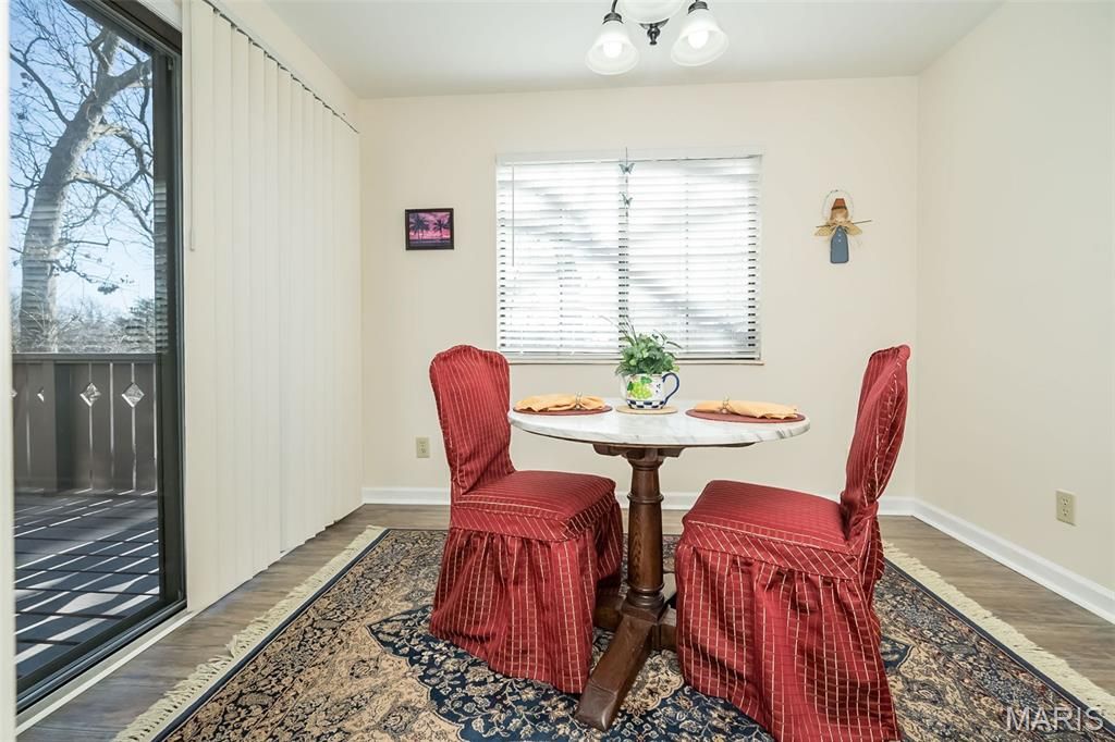 Stunning 2 Bedroom, 2 full-bath second story condo in desired Chesterfield surrounded by trees, walking trails and community pool. Spacious living room features a cozy fireplace, wet bar w/ mini fridge, access to the private balcony. Separate dining area leads to the updated kitchen and breakfast room, filled w/ natural light and additional balcony entrance. Kitchen boasts custom soft-close cabinetry, new stainless appliances, granite countertops and pantry. Both oversized bedrooms feel like retreats; primary suite w/ large walk-in closet, secondary bedroom has 2 closets plus additional hallway closet. Both full baths have been freshly updated w/ new shower doors, countertops, medicine cabinet, and light/fixtures. Additional updates include luxury vinyl flooring in the entry foyer, breakfast room, laundry/bonus room, that can be used as office, exercise room, or extra storage. Private garage & additional assigned parking. All appliances to stay.