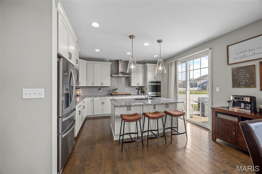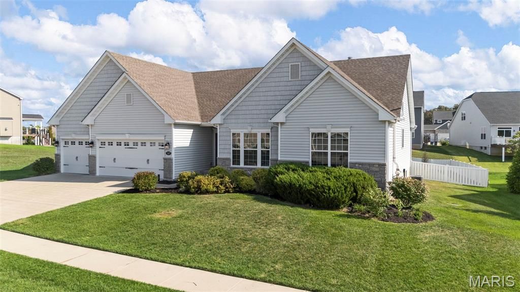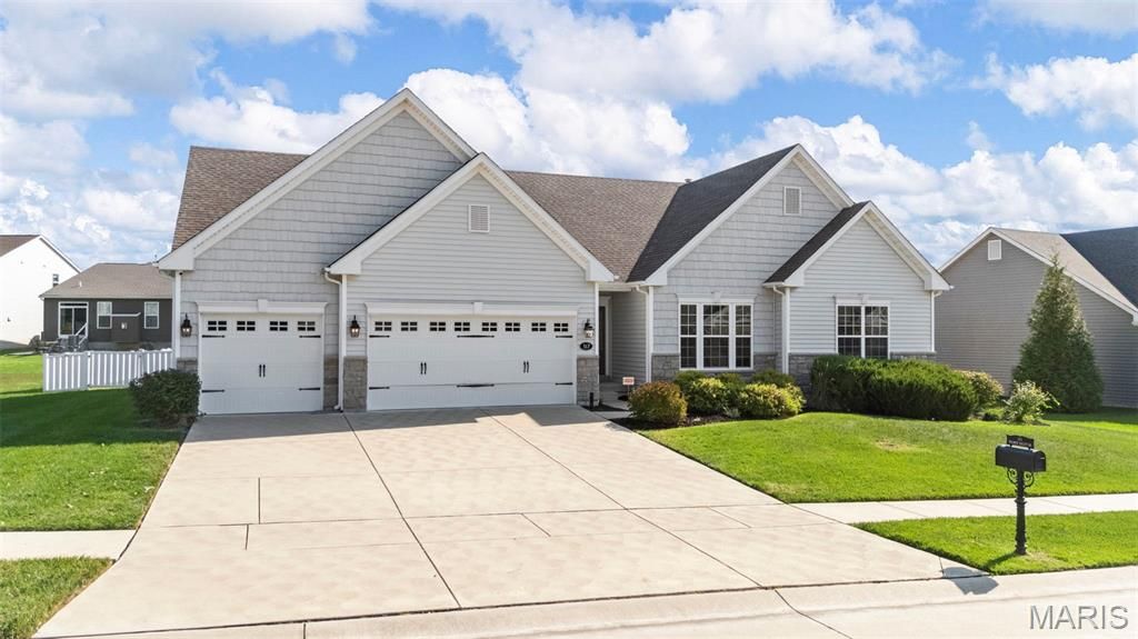 Welcome to this beautiful 6-year-old Craftsman-style ranch in the sought-after Manors at Wilmer Valley. Designed with modern living in mind, this home is filled with natural light that highlights its open and inviting floor plan. The chef's kitchen serves as the heart of the home with upgraded finishes and plenty of space for gathering, while the spa-like primary bath offers a relaxing retreat at the end of the day. Generous storage throughout ensures everything has its place, keeping daily life effortlessly organized. Step outside to a pet-friendly backyard with room to play, entertain, or simply unwind in privacy"”perfect for barbecues, outdoor games, or quiet evenings under the stars. Basement includes a full egress and can be finished to suit your lifestyle! Combining timeless Craftsman character with today's must-have features, this home offers comfort, convenience, and style in one of Wentzville's most desirable neighborhoods. With community amenities and easy access to schools, shopping, and highways, it's the perfect balance of peaceful living and everyday convenience.