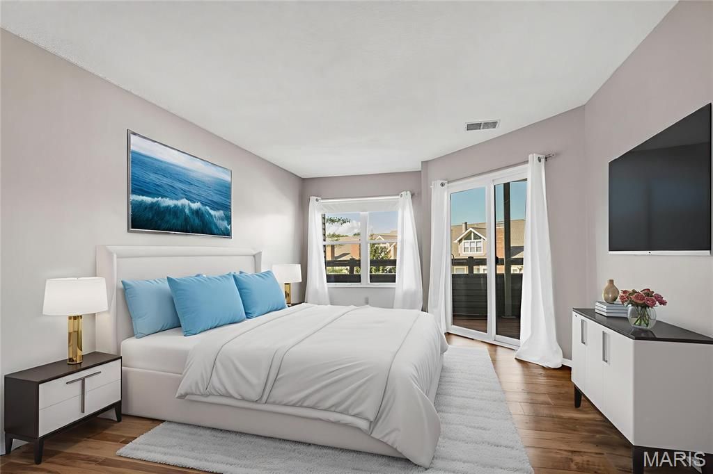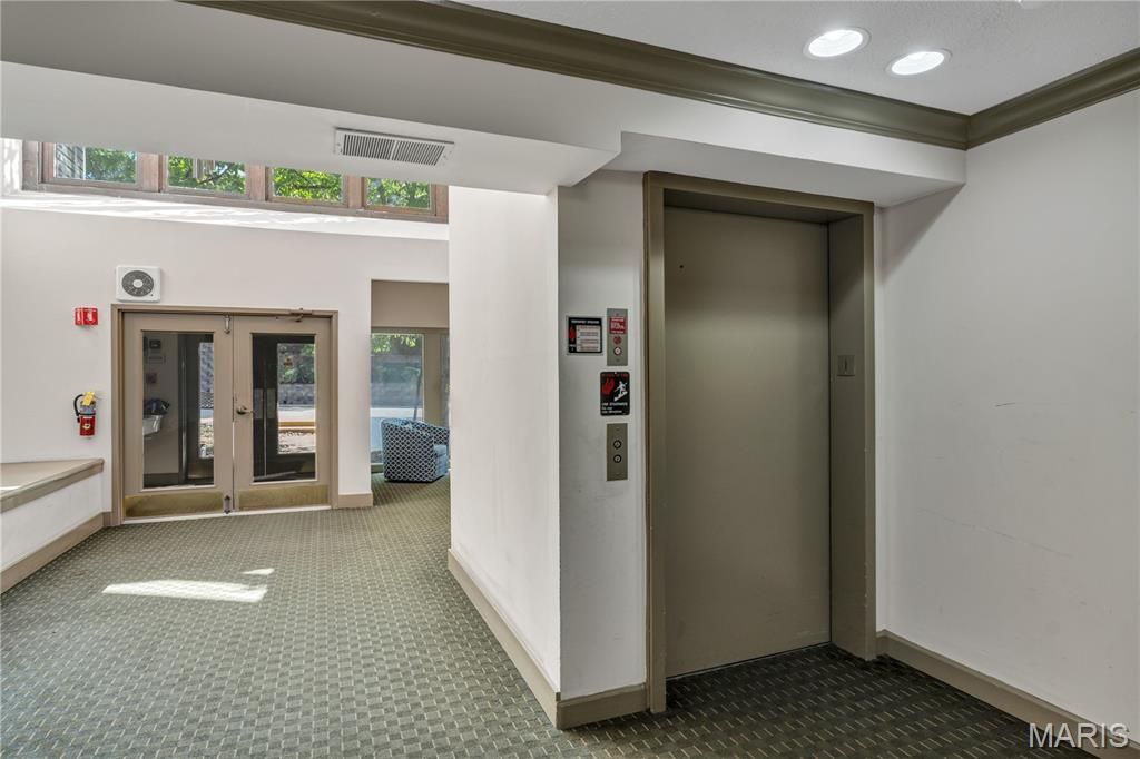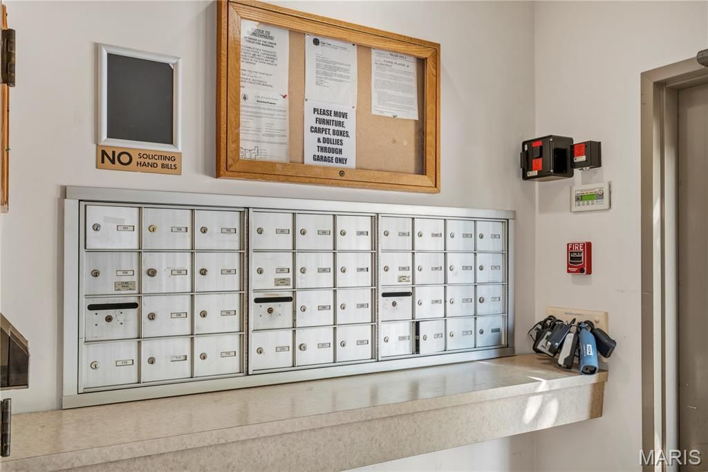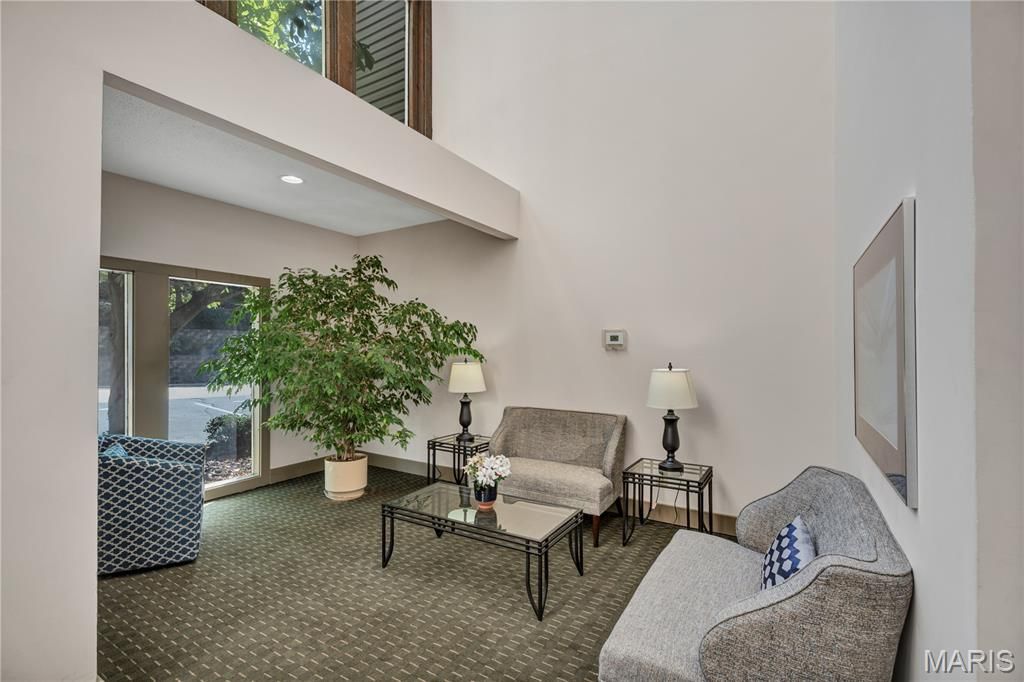 Low maintenance living in the A+-rated Ladue School District! Main floor condo (no steps!) with 2 bedrooms & 2 full baths; light & bright! Open floor plan with 2 newer sliders to private covered deck; beautiful newer laminate wood Cedar Chestnut flooring; lovely newer dining room chandelier; spacious living room has a wood-burning fireplace with electric insert, flanked by 2 newer windows; GORGEOUS UPDATED kitchen - Cambria quartz counters, lovely tile backsplash, ample newer cabinets, tile flooring, stainless steel appliances, including Energy Star refrigerator with ice maker, dishwasher, stove/range, built-in microwave & double-bowl sink with pull out sprayer/faucet & disposal; Spacious primary bedroom with access to covered deck, Primary bath has dual sinks, newer cultured marble vanity top, medicine cabinet, lighting, fixtures, separate large soaking tub & shower with newer door, and walk-in closet; 2nd bedroom has large windows & walk-in closet; Spacious hall bathroom with newer mirror, medicine cabinet, cultured marble vanity, lighting, & convenient storage closet; MANY other updates in recent years (most since 2021) - Newer furnace & AC units (2018), water heater (2023), all kitchen appliances, & garbage disposal (2025); Convenient in-unit laundry closet. Easy access to elevator that leads to secure basement storage unit and assigned parking space. Community has outdoor pool, clubhouse, fitness center, tennis court, basketball court, and 2 picturesque ponds. Location is ideal - easy access to I-170, I-70, & I-270, and to everything that Olive Blvd has to offer! Make an appointment to tour this unit today - you'll be glad you did!