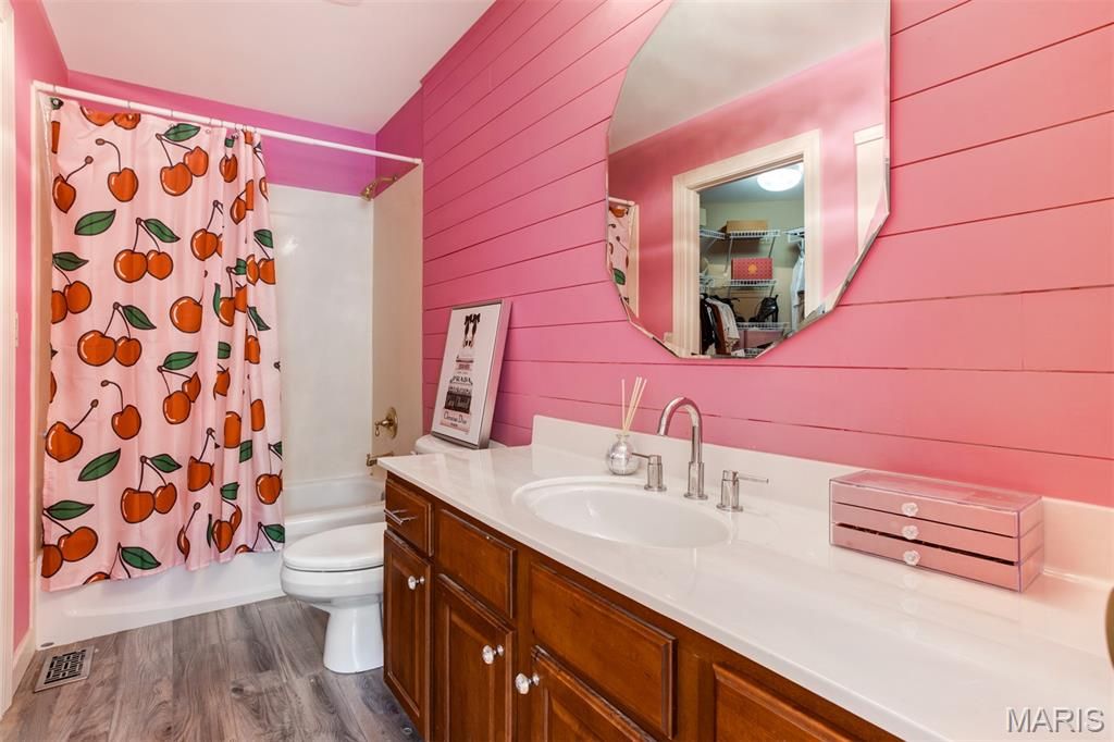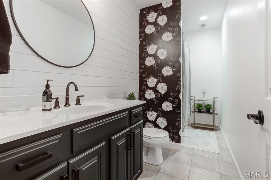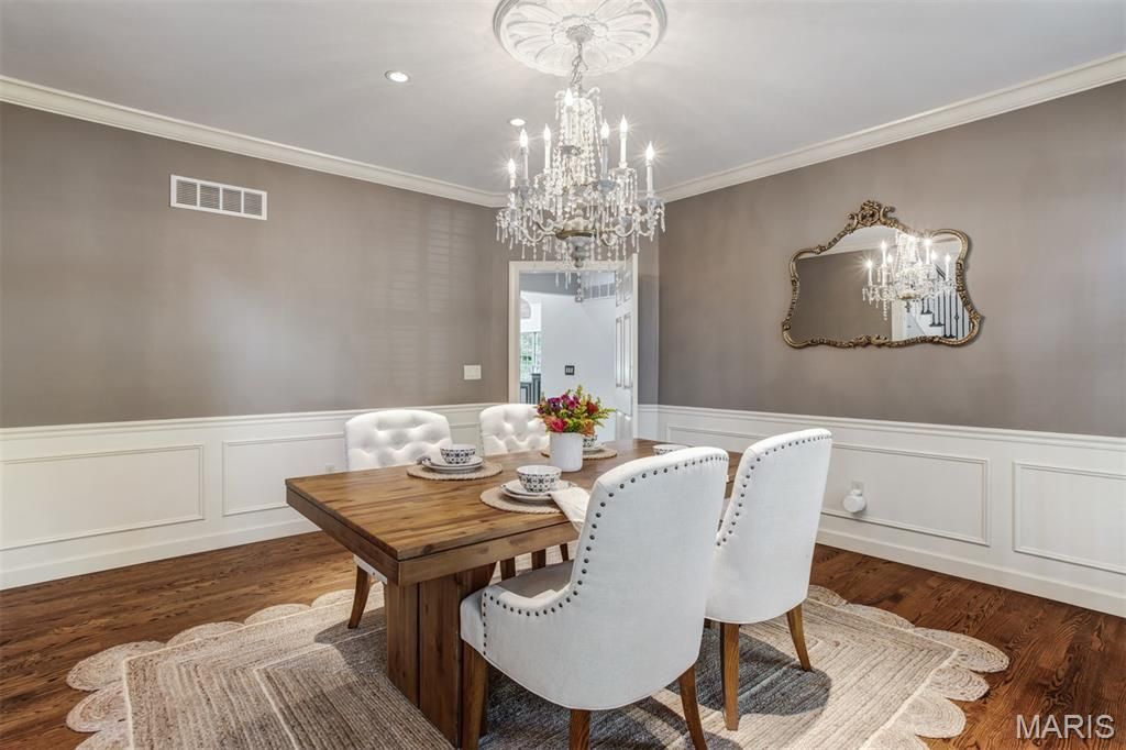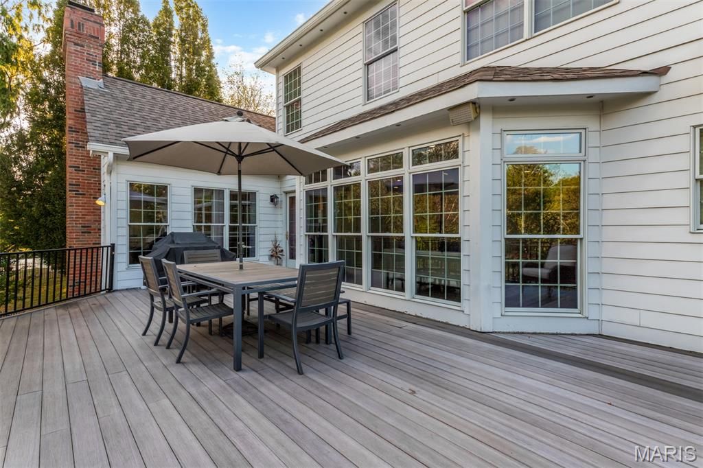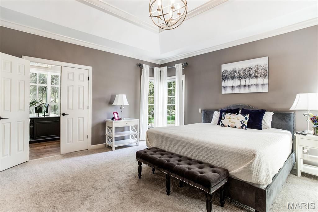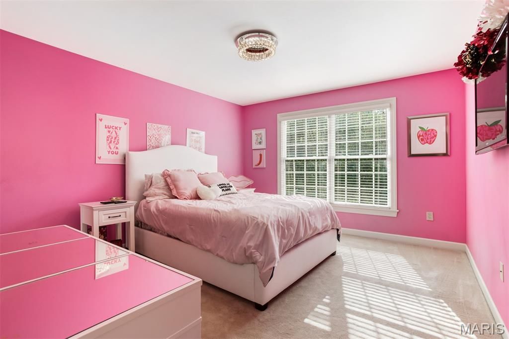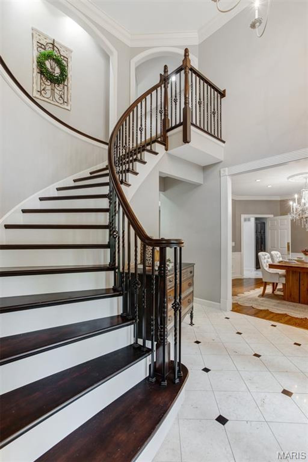 Showings begin at Happy Hour Open House on Thursday, 10/16 from 5-7pm. Prepare to be impressed by this absolutely stunning 1.5 story home, perfectly situated in the highly sought after Greystone Manor subdivision. Fully renovated inside and out, this 5 bedroom, 4.5 bath residence combines timeless elegance with modern luxury. As you step into the grand two-story foyer, you're greeted by a beautiful curved staircase and an open floor plan that flows seamlessly throughout the home. Just off the entry, a private office and formal dining room lead into the sprawling living room filled with natural light and expansive bay windows overlooking the backyard pool oasis. The updated kitchen and adjoining hearth room feature vaulted ceilings, large windows, and access to the spacious deck all perfect for entertaining or enjoying serene views of the private backyard, sparkling pool, and lush landscaping. The main level primary suite offers a peaceful retreat with large walk-in closet, picturesque backyard views, and a beautifully updated full bath, renovated fall 2025, with dual vanities, shower, soaking tub & brand new shower. Upstairs, you'll find two generously sized bedrooms connected by a Jack and Jill bath, along with a fourth ensuite bedroom overlooking the backyard. The recently renovated lower level is ideal for gatherings, boasting a large family room with wet bar & fireplace, 5th bedroom, full bath, theater room, exercise room and walkout access to the covered patio and pool area. Additional highlights include a 3 car garage, plantation shutters, composite deck, and a prime location within walking distance to Chesterfield Elementary. This exceptional property truly has it all including luxury, location, and lifestyle, making it the perfect place to call home.