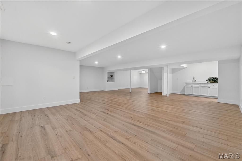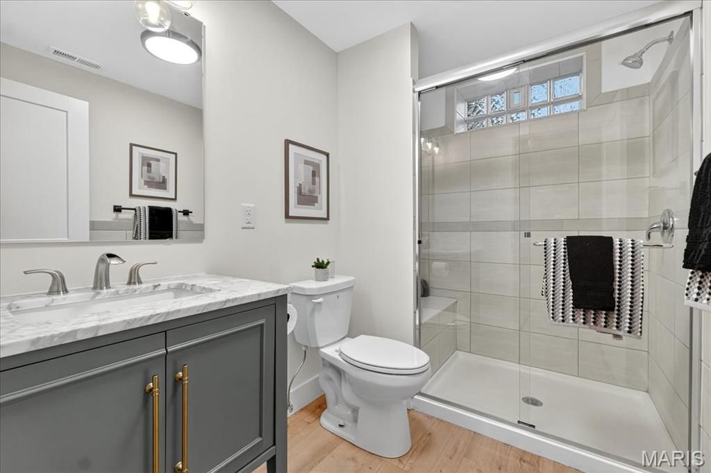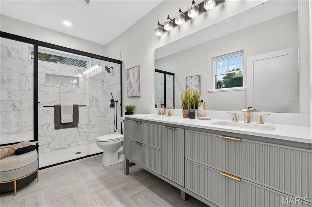 This meticulously designed 1.5 story home boasts over 3,600 sq ft of total living space, offering 4 spacious bedrooms and 4.5 luxurious baths. Step inside to an open, light-filled floor plan anchored by a chef's kitchen featuring quartz countertops, a 9-foot island, stainless steel appliances, an abundance of cabinetry, and a private butler's pantry with wine fridge. Find comfort & functionality in the open floor plan with airy living room with gas fireplace right off the kitchen, ideal of entertaining. The main-level vaulted primary suite provides a peaceful retreat with a spa-like bathroom. A versatile bonus room on the main floor is perfect for an office, playroom, or formal dining, while oak flooring, custom wainscoting, 9 ft ceilings and designer finishes elevate every corner of the home. Enjoy the convenience of laundry rooms on both the main and upper levels, and a maintenance-free deck off the breakfast room. Don't miss the custom drop zone with bench & cubbies! Upstairs, you'll find a second ensuite bedroom, a third bedroom with dual walk-in closets, and a spacious fourth bedroom, all with access to a full hall bath with double sinks. The finished walkout lower level offers a kitchenette, expansive family and rec room, a full bath, and private entry "” ideal for multi-generational living or guest quarters. Top it off with an oversized detached 2-car garage and a prime location close to downtown Webster, schools, and parks. Don't miss this rare opportunity to own a high-quality new build in one of St. Louis' most beloved neighborhoods!