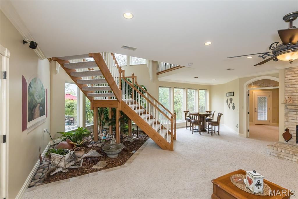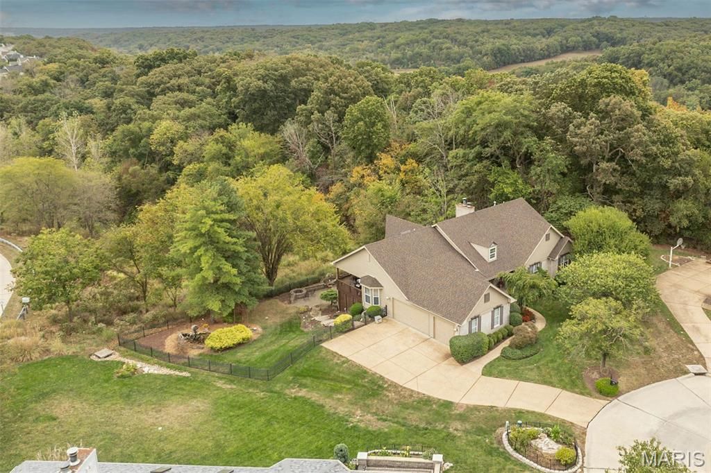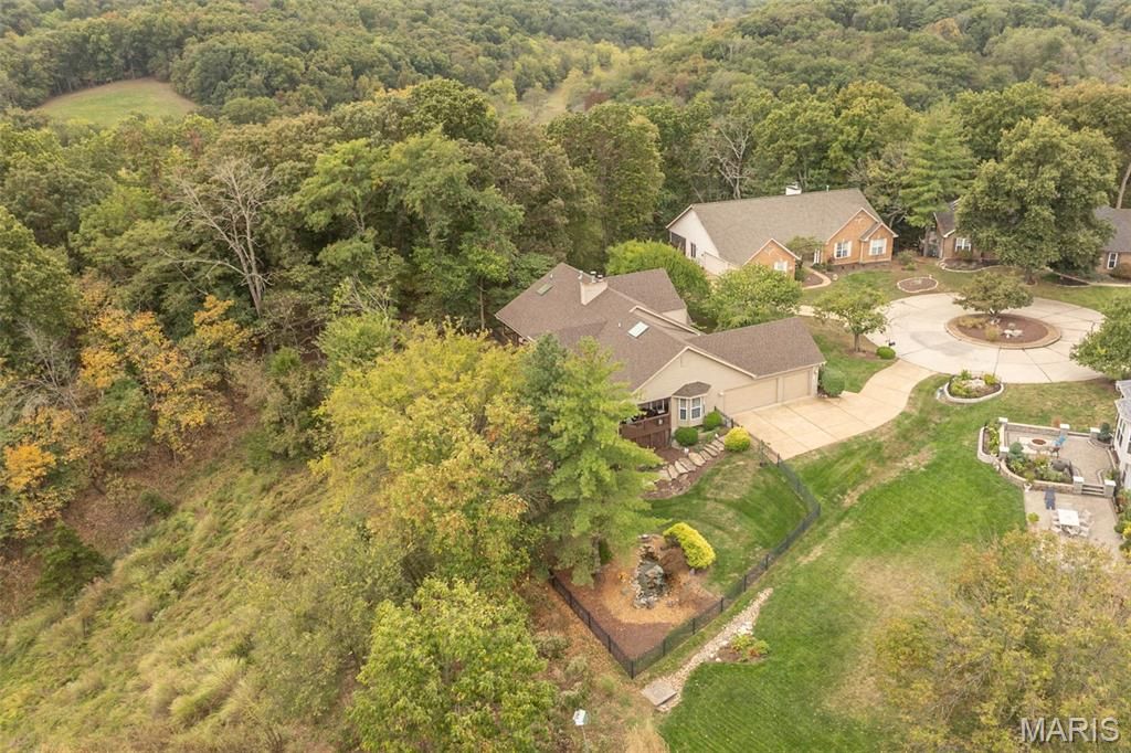 What an AMAZING view! This 5 BR, 4.5 bath atrium ranch sits on a beautiful cul-de-sac lot with a gorgeous backyard*The open floor plan with vaulted ceilings creates light filled rooms*The vaulted great room overlooking the atrium area & window wall has a sitting room for relaxing or reading*The floorplan offers a great traffic flow for entertaining*The formal dining room has a coffered ceiling & a bay window*The spacious kitchen has granite counters, tile backspash, tile floors, a center island & a pantry*The breakfast room has a bay window, serving piece (which remains) & opens to the covered deck*The covered deck overlooks the beautiful yard and water feature*An elegant powder room is convenient for guests*Main floor laundry room with cabinets, a window & a laundry sink*The main floor primary suite provides a luxurious getaway*There is a walk-in closet, vaulted ceiling, great view and a private deck for relaxing & enjoying the view*The primary bath has a double vanity, separate shower, whirlpool tub & picture window*There are two additional bedrooms on the main level that open to a hall bath*As you go down the open stairwell, you will see the family room with fireplace, bar area and lush atrium area*On either side of the family room you will find a bedoom and full bath giving you two addition bedrooms (the seller is using one as an office) and two additional full baths on that level which is perfect for out of town guests, a nanny or au pair*Off on eof the bedrooms on that level, you will find a door leading to a patio with a hot tub providing a delightful treat*There is a stamped patio, beautiful landscaping, iron fencing & much to enjoy*This home has a 3 car side entry garage, a sprinkler system, newer vinyl siding & roof & so much more!! An absolute MUST to see!!