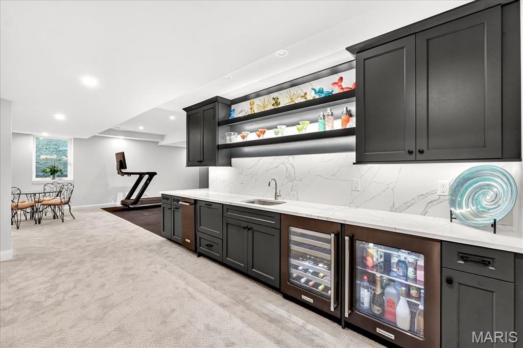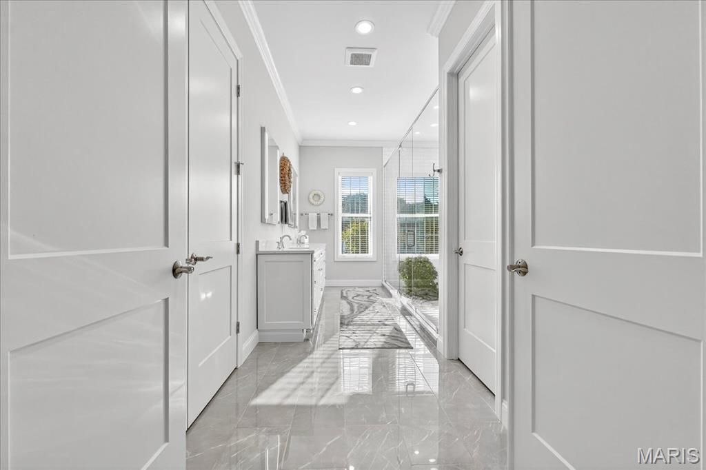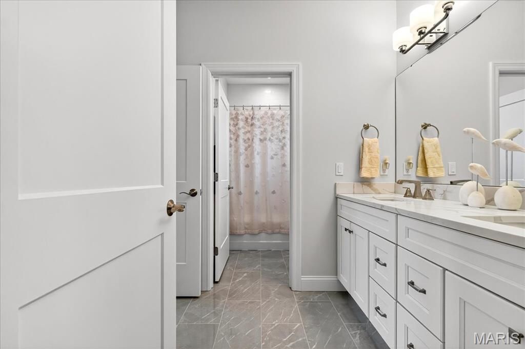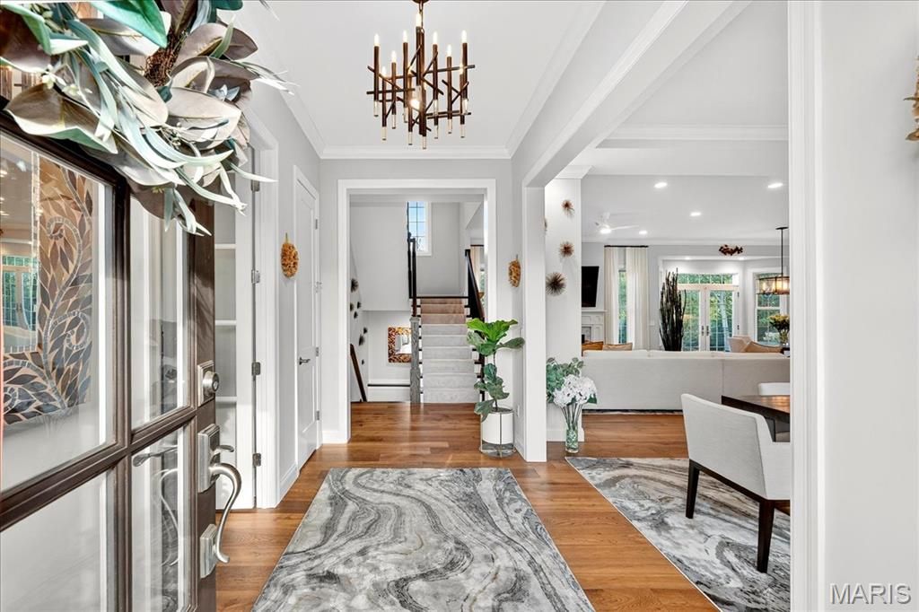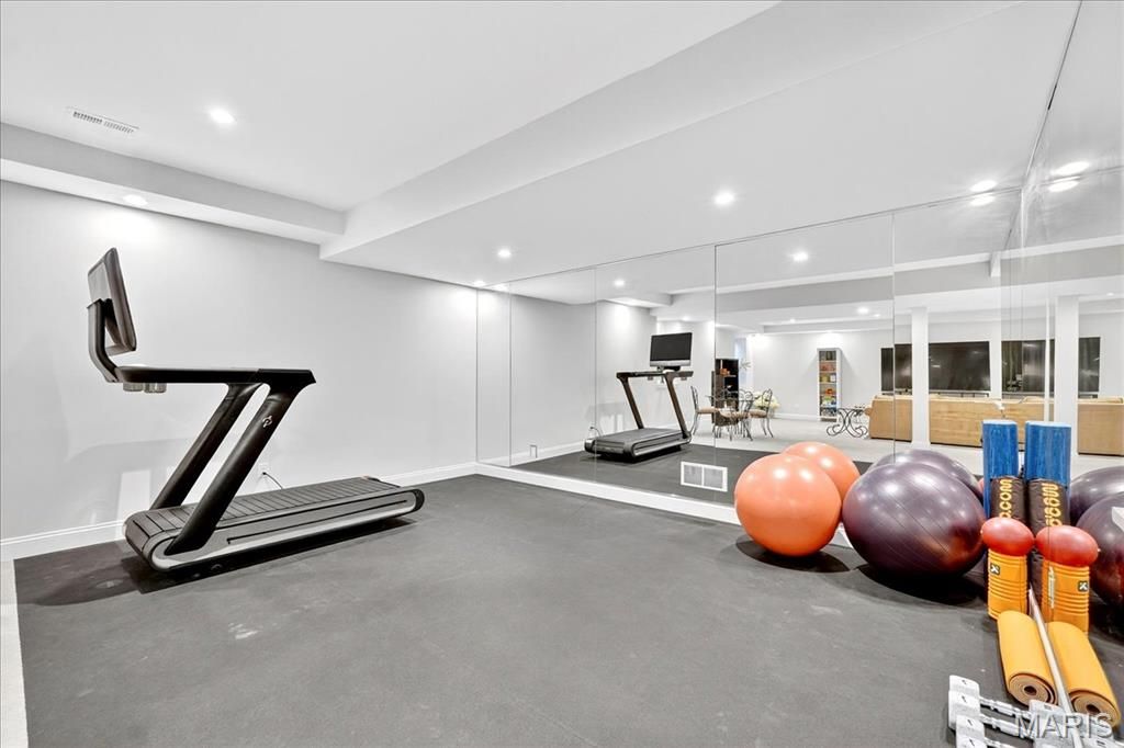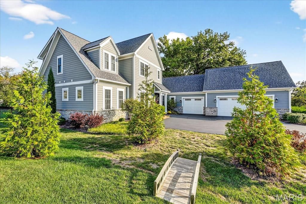 Tucked away on a private cul-de-sac, this exceptional custom-built home blends modern elegance with everyday comfort"”all just steps from Ladue & Frontenac shops, restaurants, and schools. Built in 2021, it offers a bright, airy layout with soaring ceilings and thoughtful craftsmanship across three finished levels. The heart of the home is the gourmet kitchen, featuring high-end finishes and stainless steel appliances including a built-in ice maker and microwave. The spacious breakfast room has an effortless flow into the inviting great room with its cozy fireplace. The designer light fixtures throughout add a touch of sophistication to the home. The main floor primary suite is truly a retreat, featuring a luxurious spa-style wet room with multiple shower heads and sprayers, dual vanities and two generous walk-in closets. The bathroom is enhanced by illuminated mirrors, abundant natural light, and a serene atmosphere that elevates the everyday routine into a spa-like experience. The main floor also offers a private office or additional bedroom with closet. Upstairs, you'll find a spacious ensuite bedroom plus two additional rooms joined by a stylish Jack and Jill bath. The lower level is designed for fun and functionality"”complete with a media lounge, fitness area, and an impressive bar with custom shelving, beverage cooler, and an additional built-in dishwasher & ice maker! The spacious 3-car heated garage features an epoxy floor and high-amp Tesla charger. Additional highlights include two water heaters, two zoned heating and air conditioning units, and a security system already installed and ready for activation. Outside, you'll find the beautifully maintained landscaping and irrigation system. A perfect blend of style, quality, and location, this stunning home is move-in ready!