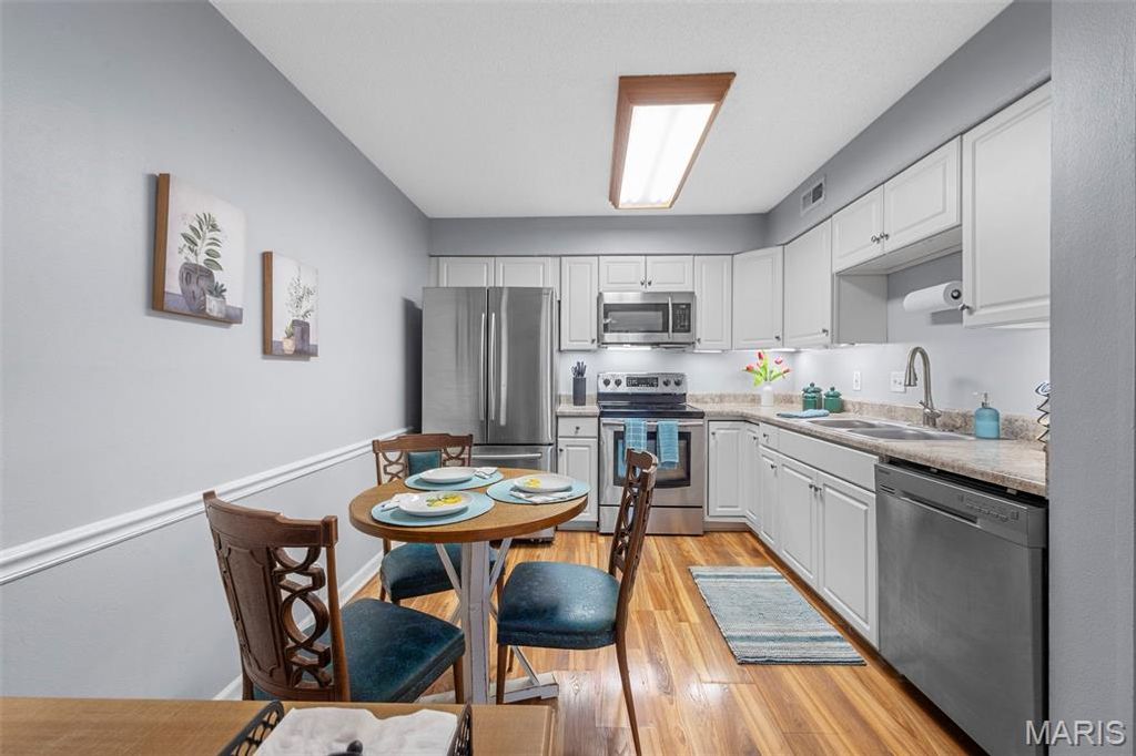 Discover turnkey living in Wildwood w/ this meticulously maintained 2-bed/2-bath condo that perfectly encapsulates modern living w/ a suburban touch. Step inside this welcoming space with a neutral palette, accented by recently updated LVP flooring. The heart of the home is a well-appointed living area that opens onto a charming deck"”offering views of lush greenery & tranquil neighborhood, NOT parking lots. The kitchen is complete with newer appliances set amidst bright cabinetry. Private havens abound, especially the master ensuite w/ ample closet space. Convenience is assured w/ in-unit. Second bedroom with it's own bath can be used for additional living space or office. W&D, just a year old. Leisure is redefined here, w/ two community pools, playground, & tennis courts. The vibrant Wildwood Town Center offers a plethora of shopping, dining, & entertainment options. Revel in the opportunity for relaxation or entertainment at a moment's notice, all while enjoying the low-maintenance lifestyle that this charming condo affords. Award winning Rockwood Schools. Welcome home!