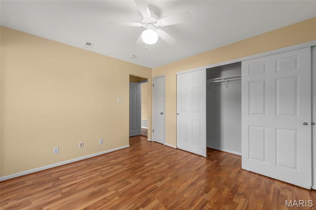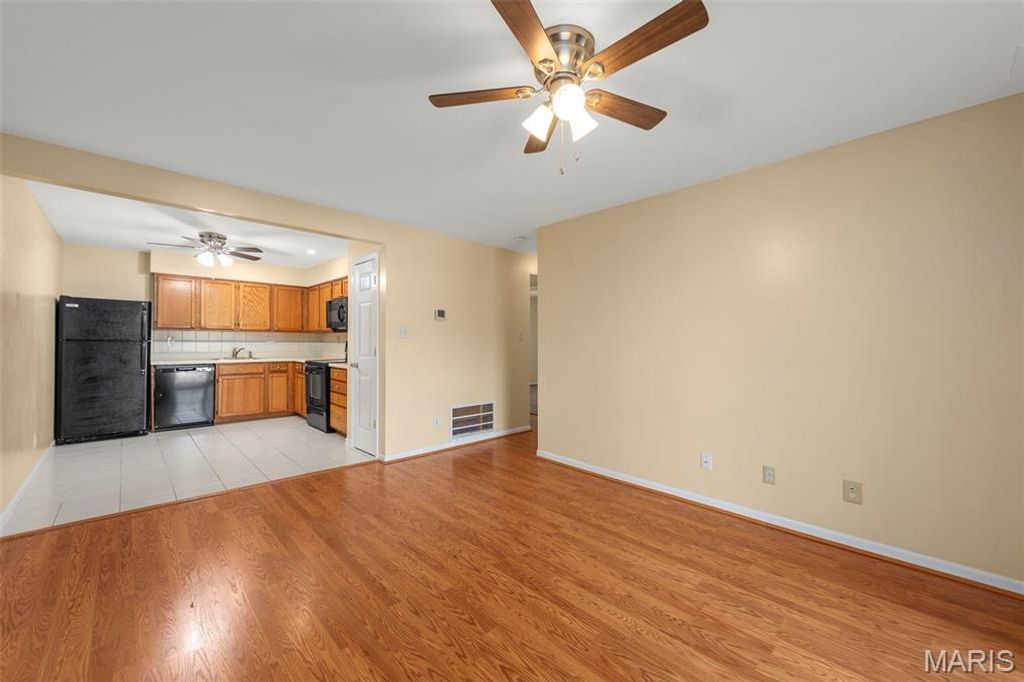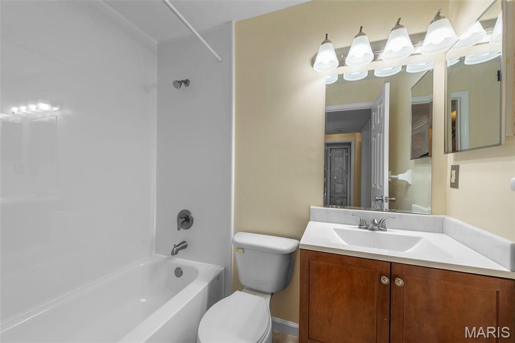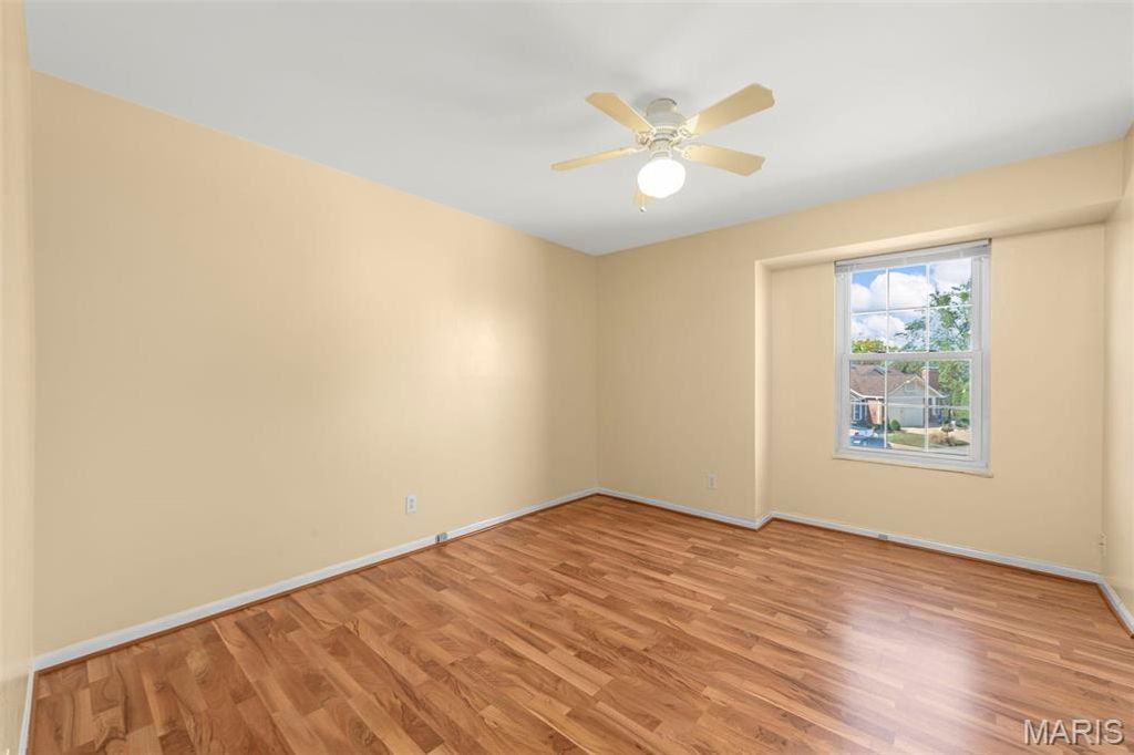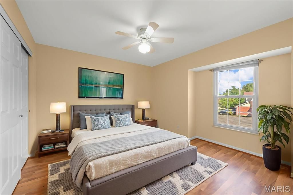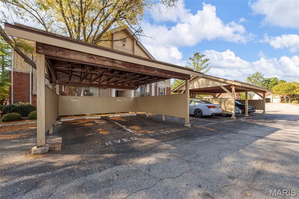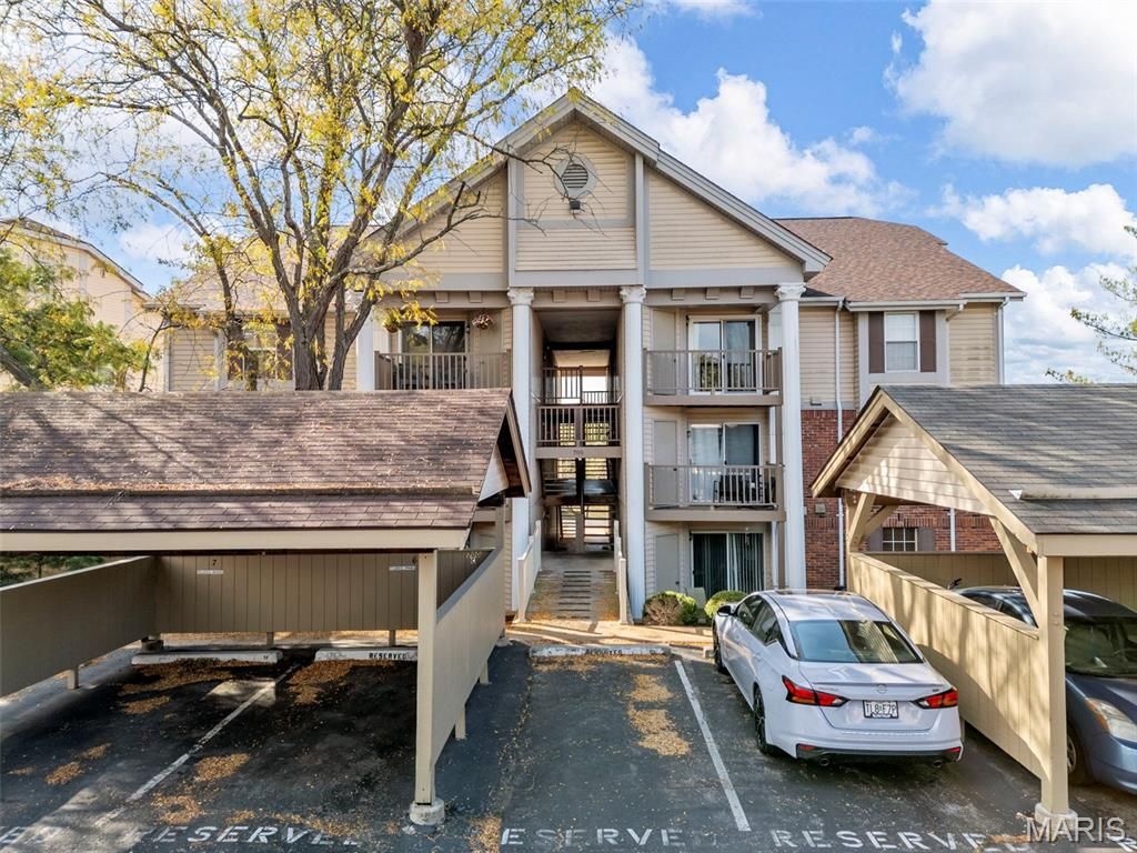 THIS is the best value in West County! This updated top floor, 2 bedroom, 2 bath condo is located in a quiet subdivision in the Parkway School district and offers so much space for the price! Enter to fresh paint and a spacious living room with laminate flooring, ceiling fan and a sliding door leading out to the balcony with storage area. The eat-in kitchen offers a coffered ceiling, black appliances, and ceramic tile flooring. The main floor laundry offers a stack-able washer/dryer. The master bedroom is complete with an attached bath, his/her closets and ceiling fan. The 2nd bedroom is also a good size with a large closet and ceiling fan. Both bathrooms have been recently remodeled. There is a carport with this condo. Additional amenities include 2 pools and a club house. Condo association fees include the neighborhood amenities, water, sewer, trash, and all the grounds maintenance. You have NOTHING to worry about with this condo!