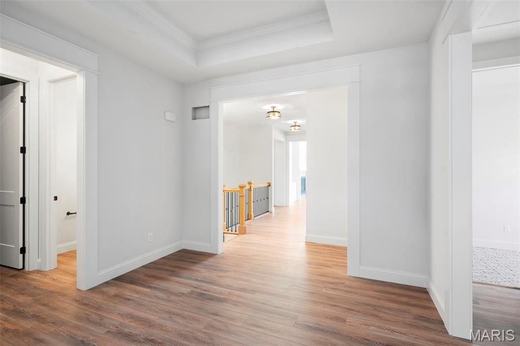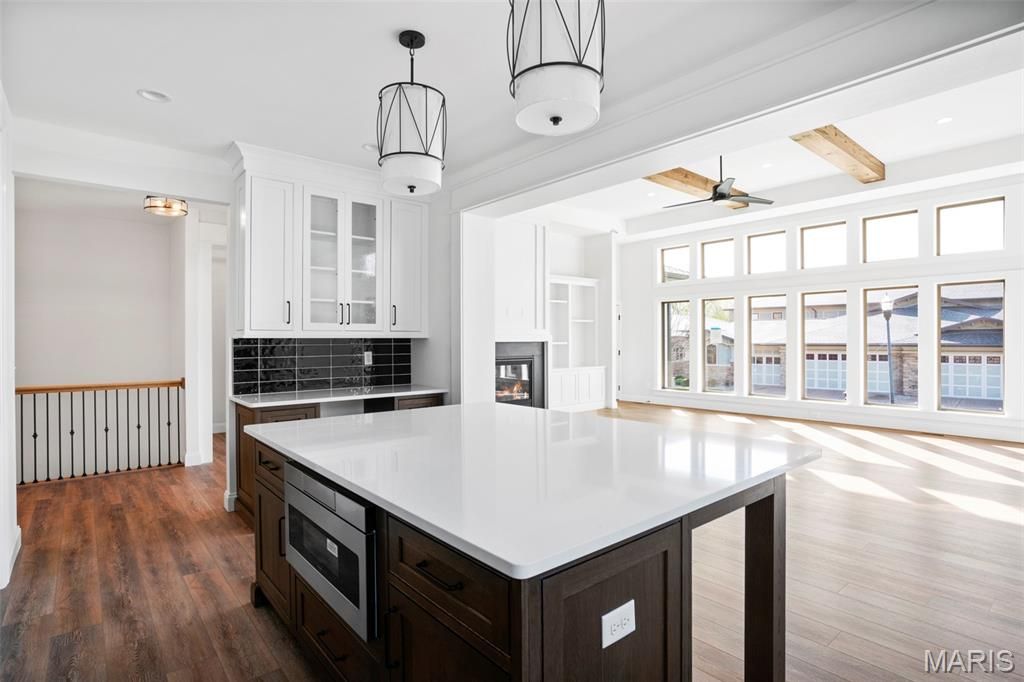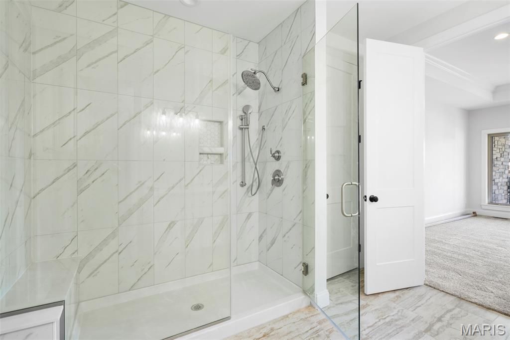New Construction in Creve Coeur by Renaissance Living! This .46 Acre lot sits on a cul de sac in an outstanding location. Enjoy easy access to restaurants, services, recreation, Lambert Int, Hwy 270 and more. This custom-built ranch features 4 BD, 4 BA and 3,344 sq ft of open, well-designed living space. The exterior is exquisite with cultured stone, fiber cement siding, arch shingles, 8 ft tall Mahogany front door, oversized side entry garage (23Dx26W), full yard sod, landscape and lawn irrig. Features inc 12 ft ceiling in the Great Rm with ceiling beams, 9 ft ceilings, engineered wood flooring, 48 inch Kitchen cabinets, soft close feature, quartz countertops/backsplash, crown molding, st steel KitchenAid appl, island with seating bar, walk in pantry, linear electric FP, Craftsman stair posts with iron spindles, tray ceiling in the Primary Suite, shower with seat in the Primary Bath, soaking tub, double bowl raised height vanities, walk in closets, frameless shower door, porcelain tile in the primary bath, 8 ft interior doors, low E windows, main floor laundry, boot bench with cubbies, 2-50 gal water heaters, hi-effic HVAC and more. There is a large, covered patio/concrete deck for outdoor enjoyment. The lower level has a tall pour, Family/Rec Rm, bar, luxury vinyl plank flooring, Bdr (with egress), full bath and unfinished storage. Students will attend desirable Parkway schools. This home is under construction and scheduled for a Nov/Dec 2025 completion.