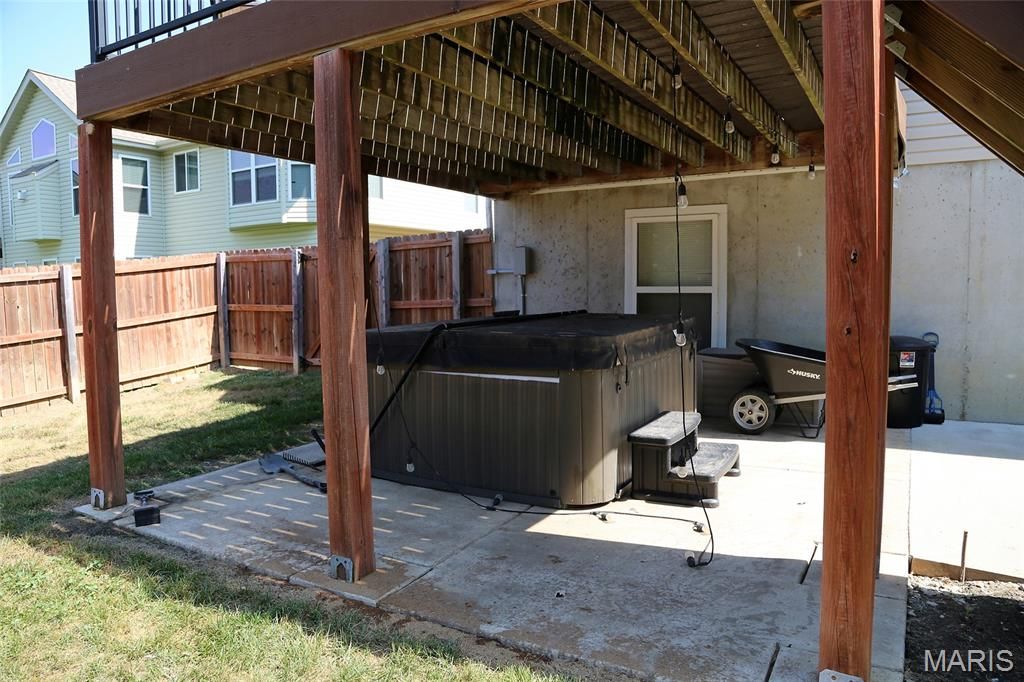 Ranch home located in Huntsdale Subdivision. This property offers 4 bedrooms and 3 bathrooms and is move-in ready. Features include a covered front porch, vaulted great room with natural light, laminate flooring, and tree-lined views. The formal dining room provides additional space for gatherings. The great room connects to a large kitchen equipped with a center island and substantial cabinet storage. A low-maintenance deck extends from the kitchen and overlooks a fenced yard backing to trees. All four bedrooms are spacious, including a master suite with a separate tub and shower. The finished basement includes a family room, an additional bedroom, a full bath, walkout to patio with hot tub and ample storage. The home is situated on a quiet cul-de-sac.