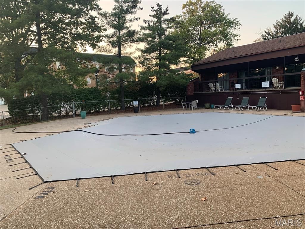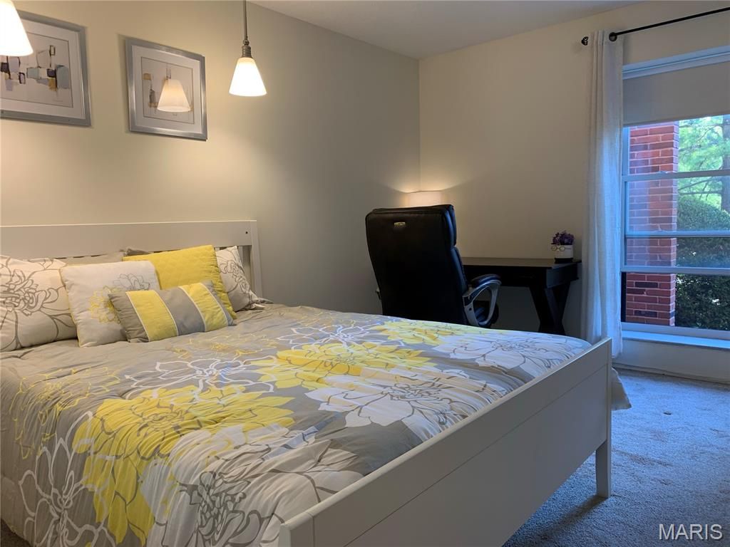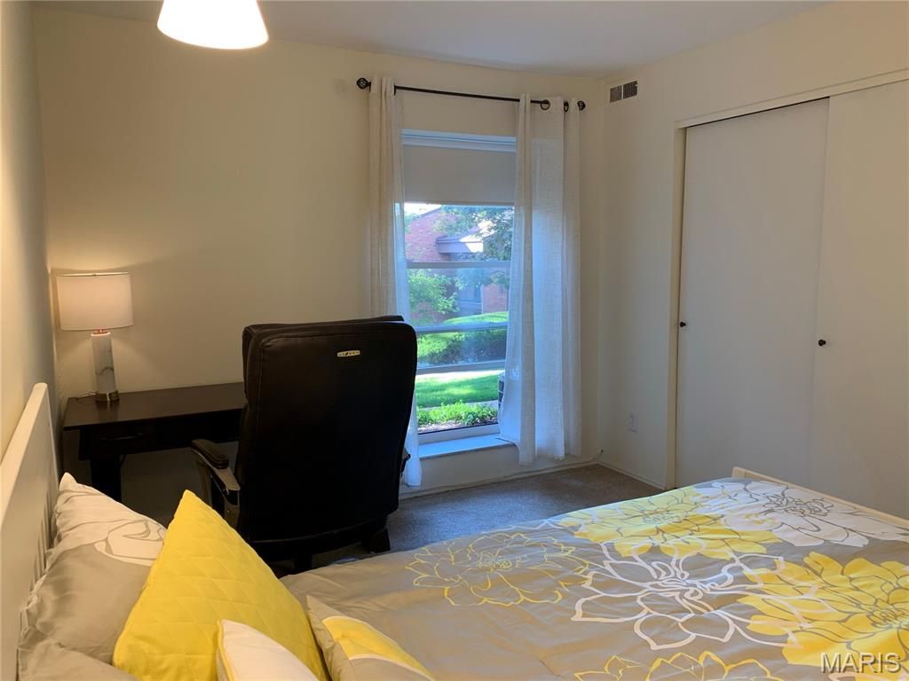 Welcome to this contemporary style 1500 sq ft ground floor 2 bed, 2 full bath condo nestled in the heart of Creve Coeur! The entry foyer is secure & there is an elevator, heated garage + extra parking! The remodeled kitchen features new cabinetry, white quartz countertop, induction cooktop, stainless steel frig, & luxury vinyl plank flooring. Perfect for entertaining, the generous living/dining combination has lots of natural light and opens to your private patio overlooking the beautiful pool, tennis courts and nice clubhouse for parties! This unit has a large master bedroom w/ a huge, double walk-in closet & remodeled full bath w/ step-in shower. The 2nd bedroom is large enough for a bedroom/office combo. The hallway bathroom is also remodeled w/attractive tile & tub/shower. This Move-In Ready unit also has its own private laundry area outside of the kitchen, 1 underground garage space & extra storage locker!