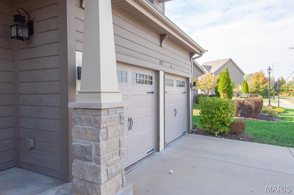 Open Sunday 10-26, 11am-1pm! Welcome home to charming 2413 Eatherton Road! Built in 2016, this two story craftsman inspired home is 9 years young, and move-in ready! Situated in the picturesque Cambury Square subdivision, in the heart of Wildwood, you'll fully embrace all that this special community has to offer- walking/biking trails, parks, dog parks, Towne Center, Music on Main, Farmers Market, and so much more. Perfect for first time homebuyers, retirees and anyone in between looking for a low maintenance walkable lifestyle. The HOA covers lawn care, snow removal, trash, summer water bills, exterior siding & the roof! The open concept main floor features 9 foot ceilings, LVP flooring, a marble surround gas fireplace & plantation shutters. The kitchen is light and bright with white shaker cabinets, quartz countertops, mosaic tile backsplash, stainless steel appliances (gas range) & a center island fit to host a crowd. Upstairs the private primary suite features French doors, spacious walk-in closet, walk-in shower w/ separate soaking tub, water closet & roomy double vanity w/ LED mirror. The 2nd & 3rd guest beds are generously sized with walk-in closets and ceiling fans. The finished lower level has a full bathroom, vinyl floors, recessed lighting, egress window & loads of additional living space. Unwind on the back patio perfect for dining al fresco, and views into the vast grassy common ground. Other Notable features... New carpeting (2025), main floor laundry, underground irrigation system & highly rated Rockwood Schools! Floor plans & 3D virtual walkthrough available!
