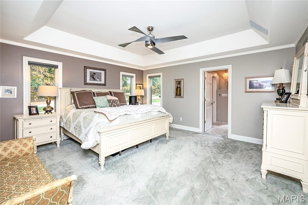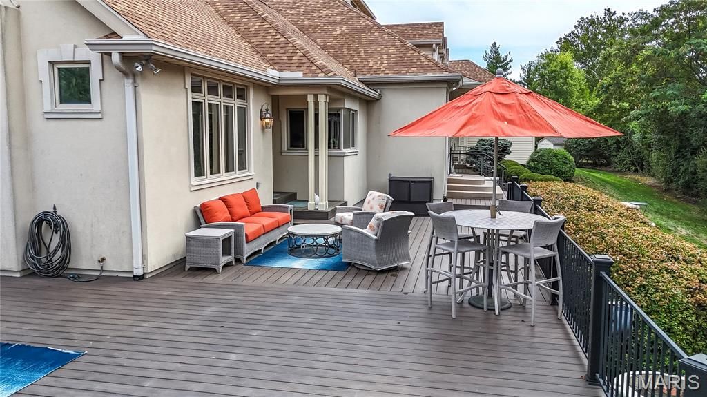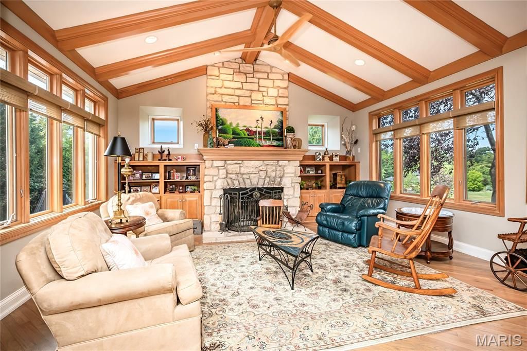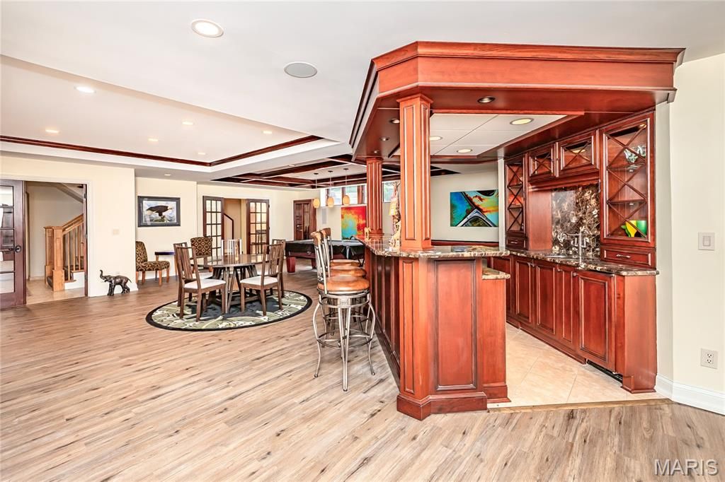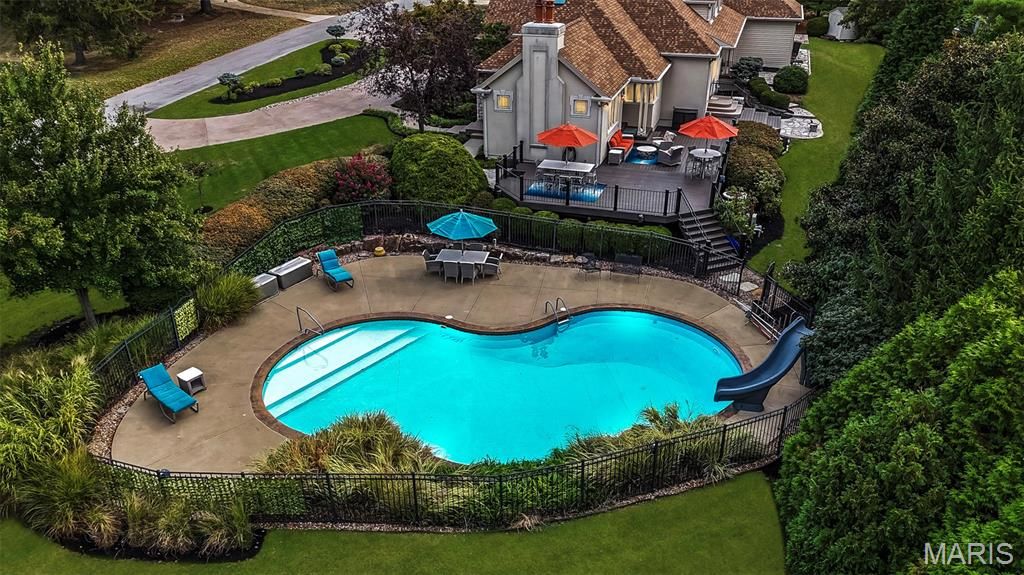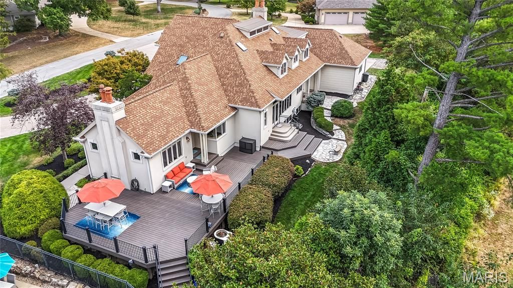 Exquisite Custom-Built French Provincial Home - A True Masterpiece This stunning 1.5-story home offers 5 spacious bedrooms and 5 luxurious baths, blending timeless elegance with modern amenities. The meticulously landscaped grounds feature a heated saltwater inground pool, complete with fountains, a slide, and complete privacy fencing and landscaping. A large, maintenance-free deck just off the hearth room and kitchen enhances the outdoor living experience. The main-floor primary suite is a true retreat, offering a spa-like experience with a steam shower and separate soaking tub in a glass-enclosed shower. The expansive walk-in closet is a dream, featuring custom built-ins for ultimate organization. For entertaining, the formal dining room, with its butler-style pantry and additional walk-in pantry, is perfectly complemented by a cozy wet bar located just off the living area. The gourmet kitchen will delight any chef, featuring top-of-the-line Thermador double ovens, Sub-Zero refrigerator, Thermador cooktop, and Bosch dishwasher. Beautiful granite countertops, Woodmode cabinetry, a center island, and a breakfast room open seamlessly into the gorgeous hearth room, with custom built-ins, a stone fireplace, and exposed wood beams. Clerestory windows fill the home with natural light, and the home also includes a touch pad stereo system for modern convenience. Upstairs, you'll find 3 large bedrooms and 2 full baths, as well as a versatile area perfect for a study or yoga space. Luxurious touches like refinished gray-washed quarter-sawn oak hardwood floors, intricate inlaid carpet borders, and an abundance of high-end finishes throughout elevate the home's appeal. The lower level is an entertainer's paradise with a wet bar, theater room, craft room, gym, and ample storage. Two staircases lead to this expansive space, making it ideal for family gatherings and private enjoyment.The oversized 3-car garage features electric charging ports and three brand-new steel-backed insulated doors. The property's newer aggregate concrete driveway and extensive landscaping further enhance its curb appeal. Don't miss the chance to own this incredible estate"”perfect for luxury living and grand entertaining.