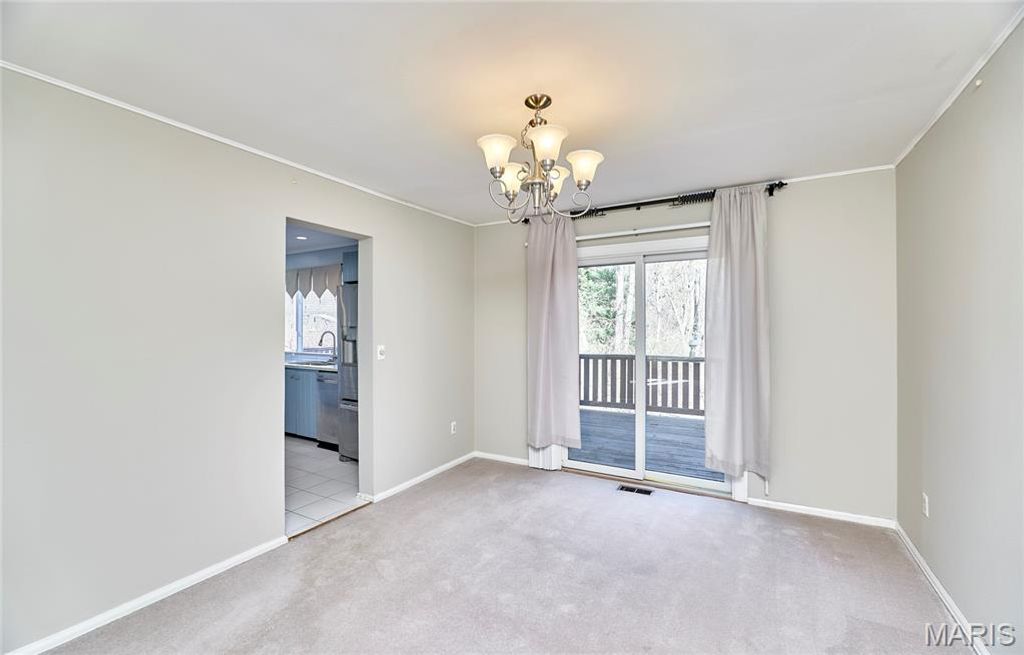 A rare find in Chesterfield! This meticulously cared-for 4-bedroom, 3-bath home is tucked away on a quiet street and ready for new tenants to make it their own. Step inside this move-in-ready two-story and you'll immediately notice the bright, open floor plan, neutral finishes, and an abundance of natural light. The modern kitchen features custom cabinetry, tile backsplash, stainless steel appliances, and a spacious dine-in area complete with wall-mounted TV"”perfect for everyday living and weekend entertaining. Upstairs, you'll find four generously sized bedrooms and two beautifully updated full bathrooms. The walk-out lower level offers additional flexible space for a home office, fitness room, playroom, or storage"”whatever fits your lifestyle. Outside, enjoy the large backyard and expansive deck, ideal for hosting BBQs or relaxing outdoors. Located minutes from highways, top-rated schools, shopping, parks, and the popular Eberwein Dog Park, this home truly has it all. Pets considered with approval and additional fees. *** New carpeting throughout installed this week, and kitchen cabinets are being painted white *** Don't miss your chance to live in one of Chesterfield's most desirable areas"”schedule your showing today!