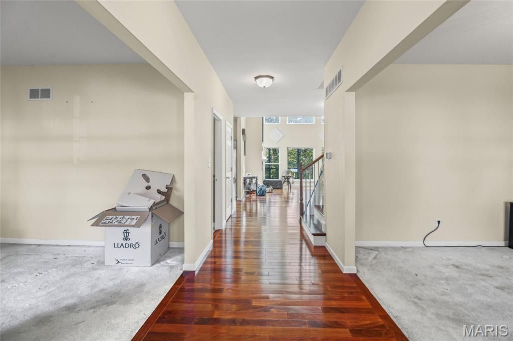 Welcome to 410 Gillham Court, Ballwin, MO 63021 - offers an incredible opportunity for some Sweat Equity. Priced well below market value, this home is bursting with potential to make it your own. This stunning custom-built home sits on a beautiful .76-acre lot backing to trees and is filled with thoughtful upgrades throughout "” the owners truly thought of everything. Step inside and you're greeted by rich mahogany wood floors, a formal dining room, and a living room that leads into a breathtaking two-story great room featuring a gas fireplace and walk-out access to a spacious deck "” perfect for entertaining or relaxing with nature views. The main-floor primary suite offers comfort and luxury with a gas fireplace, spa-inspired bath including a jetted tub, separate shower, dual-height vanities, and a walk-in closet. The gourmet kitchen is a chef's dream "” showcasing a soapstone island, Wolf gas range, built-in Sub-Zero refrigerator, walk-in pantry, dumbwaiter, and a convenient main-floor laundry room. Upstairs you'll find three additional bedrooms, each with walk-in closets. Two bedrooms share a Jack-and-Jill bath, while the third enjoys its own private full bath. The upper level also includes a bonus room with separate heating, a second laundry area (stack washer/dryer), and its own electrical panel. The partially finished lower level expands your living space with a second kitchen, family room, bedroom with full bath, separate office, ample storage, and walk-out access to the patio. Additional highlights include triple-zoned HVAC, a 75-gallon water heater, and an abundance of space inside and out. Don't miss your chance to make it yours and enjoy all that 410 Gillham Court has to offer!. This incredible home will be sold AS-IS.