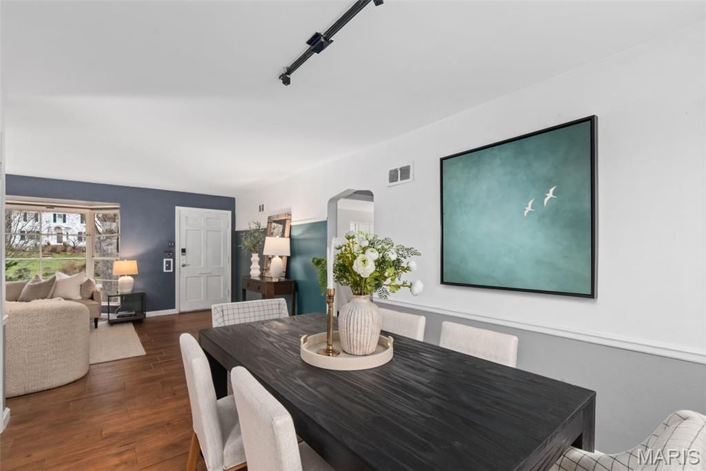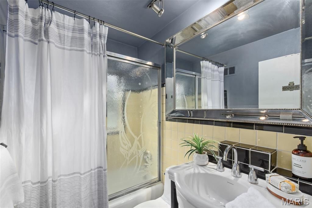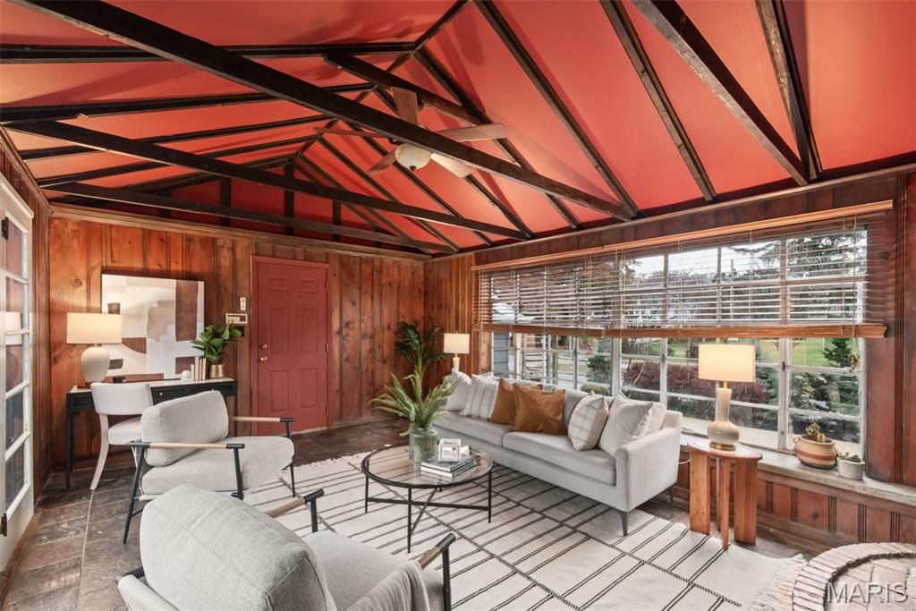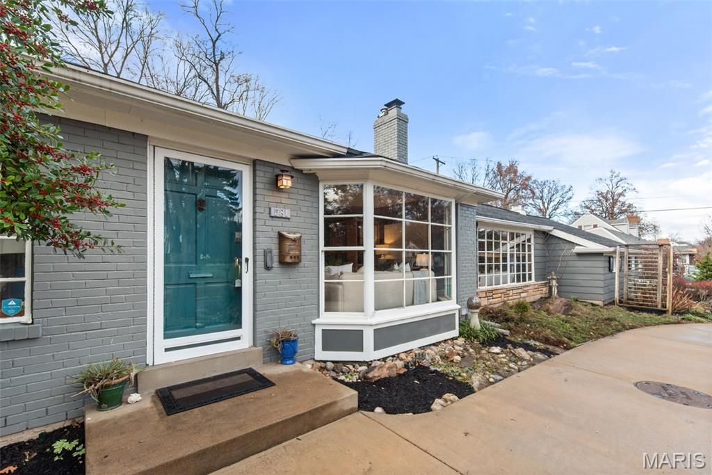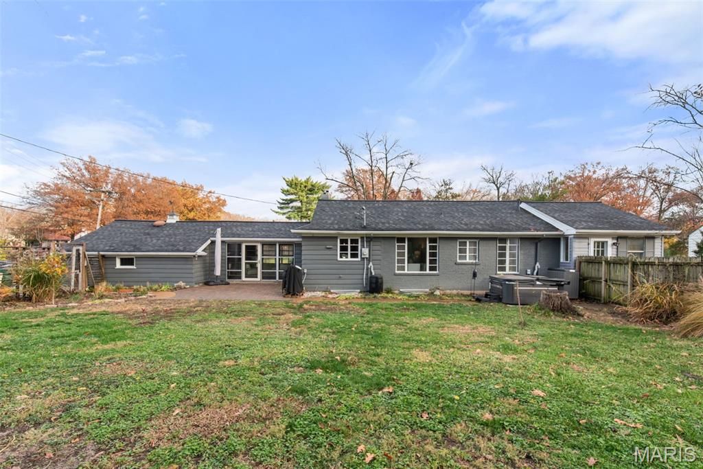 Est. 1949. Welcome to this beautifully updated mid-century modern ranch nestled in the heart of highly sought-after central Webster Groves, set on nearly half an acre. This light-filled home welcomes you with gorgeous hardwood floors in the living and dining rooms, complemented by a charming bay window that creates the perfect setting for everyday living or special gatherings. The main level offers three bedrooms with brand new carpet and two updated full baths, along with a modern kitchen featuring refreshed cabinetry, butcher block countertops, SS appliances and a deep kitchen sink. A large vaulted family room serves as a sanctuary in the home, showcasing a cozy brick and stone fireplace, tile flooring, and walls of windows that flood the space with natural light and offer peaceful views of the private backyard. Convenient main-floor laundry completes the main level. The partially finished lower level also with brand-new carpet provides flexible space for a recreation room, home office, or play area. Outside, enjoy a fully fenced backyard with a paver patio and storage shed, ideal for outdoor entertaining or relaxing evenings. Parking is effortless with an oversized attached two-car garage featuring workshop space, a convenient circle drive, and additional side parking. Located just a short stroll from Old Webster, you'll love easy access to award-winning restaurants, boutique shopping, coffee shops, and year-round community events. Experience the charm, walkability, and lifestyle that make Webster Groves one of the most desirable places to call home"”this move-in ready gem is a must-see.