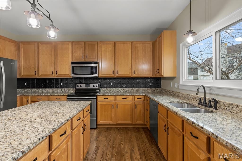 See today and move-In before the holidays/end of the year. Welcome Home to your new beautiful and spacious 4,698 SQFT two-story home in the highly sought-after Carlton Glen subdivision! (2,882 SQFT of finished living space + 1,216 SQFT of Dry Basement/Storage + 600 SQFT of Triple Garage/Workshop). Perfectly positioned on a large corner lot, this home stands out with its large 1/3 Acre yard and exceptional curb appeal. *** Step inside and be greeted by gleaming hardwood floors that flow seamlessly through the foyer, den/office, great room, kitchen, and breakfast room. All hardwood flooring has been professionally finished, adding a warm, elegant touch throughout. The open circular floor plan offers an effortless flow from the kitchen to the breakfast room to the great room to the dining room to the den/office creating the perfect setting for both everyday living and entertaining. A formal dining room and dedicated office area add to the home's versatility, providing an abundance of living and working space. *** The gourmet kitchen is a true highlight, featuring 42-inch maple cabinets, stainless steel appliances, granite countertops, a center island with breakfast bar, and modern finishes + plus a built in kitchen desk/office nook. Whether you're hosting dinner parties or casual family meals, this kitchen is both stylish and functional. *** Upstairs, you'll find four generous bedrooms, a versatile Recreation Room/Loft/Home Office, and the convenience of a second-floor laundry room with full size washer and dryer. The oversized and luxurious master suite is a true retreat - complete with vaulted ceilings, two large walk-in closets, and a gorgeous ensuite bathroom featuring twin vanities and a walk-in shower and a tub. Every detail has been designed for comfort, space, and elegance. *** The home is loaded with everything you would want including hardwood floors, granite surfaces, modern light fixtures, ring doorbell, security cameras and lighting, vaulted ceilings, and oversized picture window and bay windows that add architectural character and so much natural light. *** Additional features include a 3-car garage offering plenty of room for vehicles, toys, storage, or a workshop + room for another 6 cars in the driveway for when hosting your get-togethers + a 600SQFT Concrete patio easily accessible from the Kitchen/Breakfast room with and amazing for grilling and outside hangs. *** All the big things are new in the last few years allowing for maintenance free living including a brand new roof in 2023, all new windows throughout in 2022 and new outside patio stairs in 2025 + a seller paid home warranty for future peace of mind and - this home just can't be beat as all the expensive things have already been done for you! *** Carlton Glen is one of the most desirable communities in Wentzville, located just 1.1 miles off Highway 70 at Highway Z, offering easy access to I-70 and close proximity to Chesterfield Valley, The Meadows Mall, Hawks Ridge Plaza, and Wentzville Parkway's shopping and dining. The neighborhood also features a community swimming pool, playground, sidewalks, and a lake, creating a welcoming environment for families and residents of all ages. *** This home combines style, space, and function in an unbeatable location - ideal for anyone seeking room to grow or a spacious work-from-home-arrangement without sacrificing comfort or charm. This one sparkles with just professionally shampooed carpet and is priced to sell. *** Run don't walk to this exceptional opportunity to own a truly stunning home in Carlton Glen! It's easy to Schedule your showing today - this one won't last long!