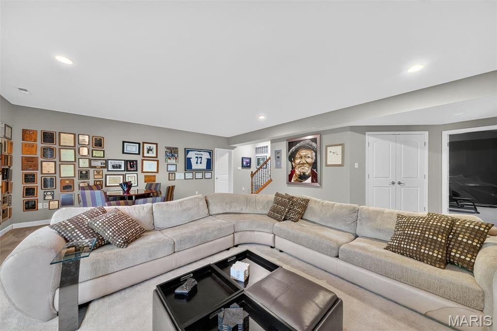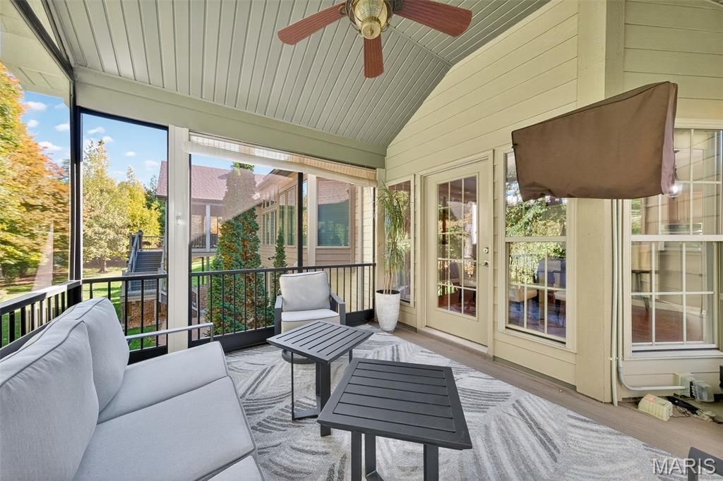 Elegant 4-bedroom, 2 1/2 bath villa located in a gated community! Offering a secluded and peaceful retreat! A GRAND WELCOME to you: as you enter into serene spaciousness with beautiful hardwood floors throughout. A formal dining room, The great room features a cozy gas fireplace, floor to ceiling windows that flood the space with natural light and a seasonal view of the Missouri River. The charming breakfast nook provides direct inviting access to a private screened porch equipped with a tv and ceiling fan. The kitchen is equipped with stainless steel appliances, custom cabinets, granite countertops, and a walk in pantry. An extension to the kitchen's entertaining capabilities, flows into a custom bar with cabinetry, some glass doors, enhanced lighting, granite countertop and refrigerator. Main floor laundry room, plenty of custom cabinets, granite countertop and utility sink with direct access to the three-car garage. The primary bedroom offers a bright and peaceful oasis with a spa-like primary bath with a toto toilet featuring a bidet and heated seat, dual vanities and a walk-in closet. The Second bedroom has a walk-in closet, and currently used as a piano room, located next to a powder room. The walkout lower level boast two spacious bedroom with walk-in closets, one bedroom currently used as a office, full bath, large rec room, full gym and plenty of storage, roof replaced fall of 2022, This home comes equipped with the modern conveniences of both a Beam central vacuum system and a irrigation system.