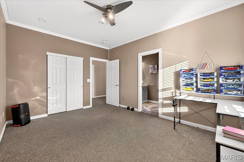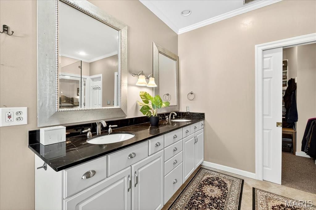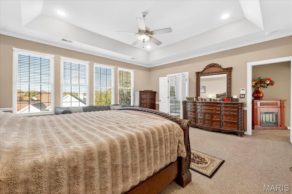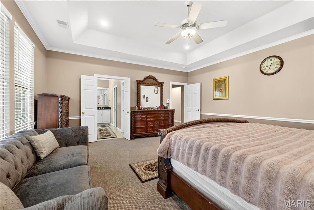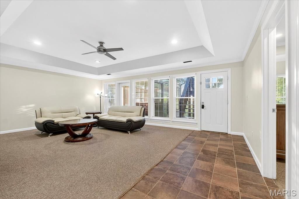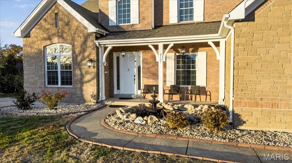 Step inside this luxurious 4,356 sq ft home nestled on a quiet cul-de-sac, welcomed by a stone front, side-entry 3-car garage and a peaceful pool. The airy layout unfolds with high ceilings, arched openings, wood floors and crown molding, guiding you into a warm family room featuring a cozy cast-stone fireplace accented by a custom stone wall. The kitchen is a true dream "” custom 42" cabinets with crown, granite counters, walk-in pantry, stainless appliances, a spacious center island with downdraft cooktop and a separate California bar with seating. The oversized primary suite offers a serene escape with tray ceiling, large walk-in closet and a spa-like ensuite with soaking tub and glass shower. Main-level laundry and carpeted bedrooms add everyday comfort. The tall-pour walkout lower level extends living with a large rec room, added sleeping quarter/home gym, remodeled bath and a sunroom with a hot tub that stays. Step outside to your private retreat "” a fenced, spacious yard, saltwater pool with fountain feature, and a deck overlooking the pool. Updates include new pool liner, motor, filter, outdoor lighting, stained deck and fresh interior paint. Located in the sought-after Rockwood School District and within walking distance to Lafayette High School, this home blends elegance, comfort and resort-style living.
