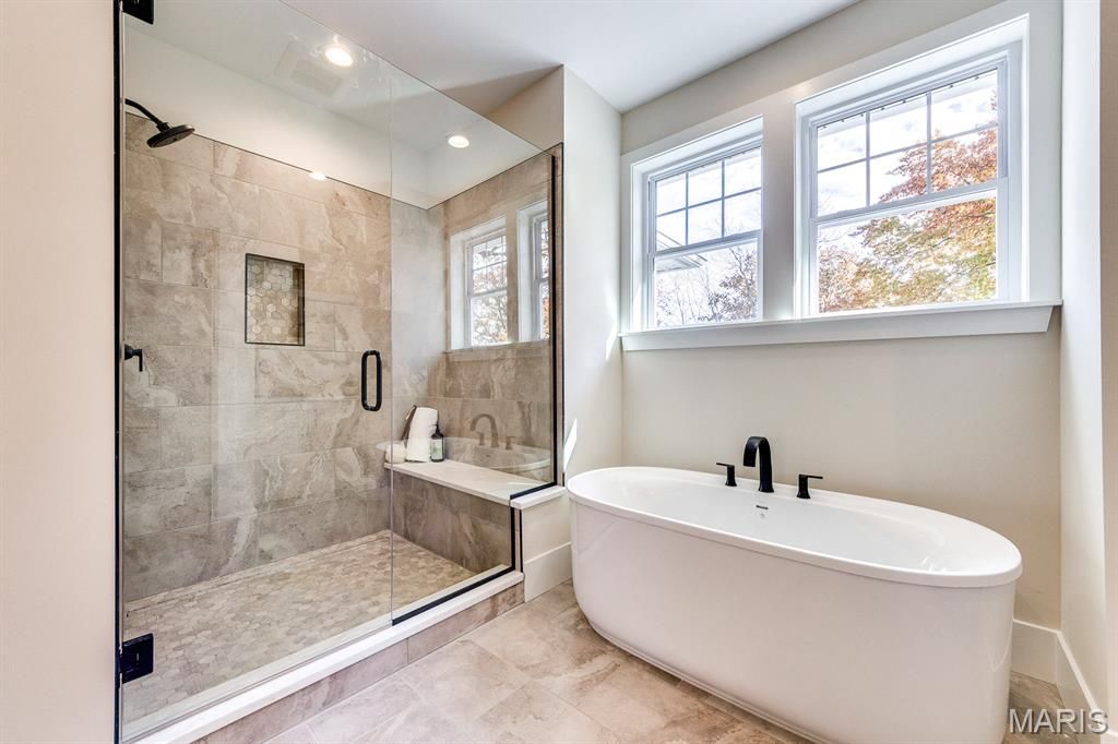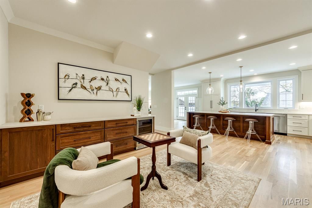 Extraordinary opportunity to live in Webster Groves with 3500+ square feet of new living space on a private .6 acre lot! Huge front porch takes advantage of this idyllic setting and sets the stage for this impressive modern home. Mahogany front door opens to spacious foyer and great room w/wainscotting, crown molding and custom fireplace. Two sets of French doors open onto the new 20ft patio creating an ideal indoor/outdoor connection. The kitchen is Stunning w/a 10ft walnut island, custom cabinets, 48" range and views to the private backyard. The formal dining room has another set of French doors leading onto the front porch, the perfect spot for winding down after dinner. The "family entrance" is at the rear porch and opens into the mud room/laundry/butler's pantry. The home office and half bath complete the main floor. The custom staircase leads to a large 2nd floor loft area. The primary bedroom is a dream w/walk-in closet; luxurious bath w/heated floors & separate soaking tub; a coffee bar w/frig and captivating views out the French doors to this incredible setting! There is a 2nd bedroom suite w/private bath and bedrooms #3 & #4 share a 3rd full bath. The basement features a 9ft tall pour, full bath rough-in & egress window to accommodate an additional 900+/- sq ft. New white oak floors throughout the home, 9ft ceilings on first & second floor, zoned heating/cooling, underground power...an opportunity like this will not be found again.