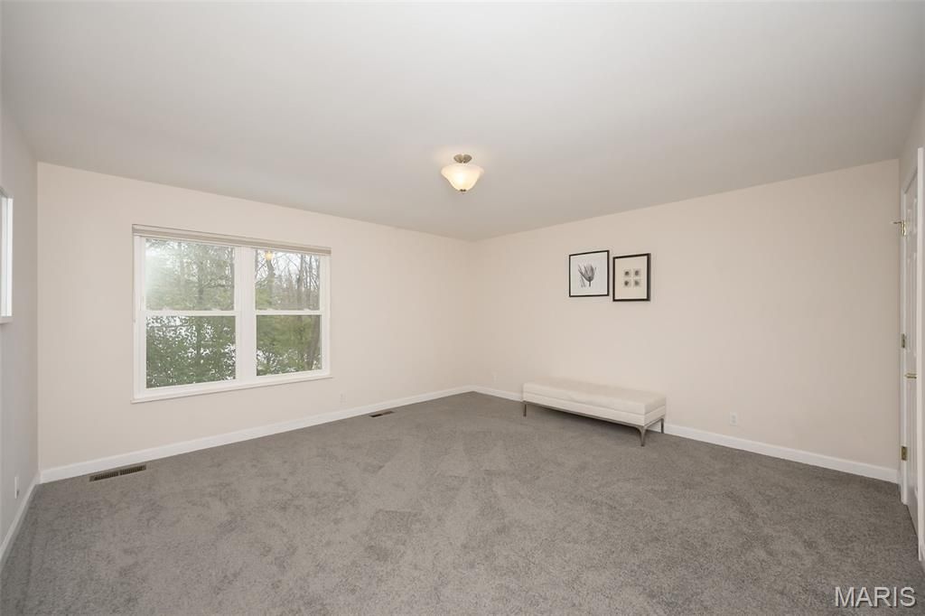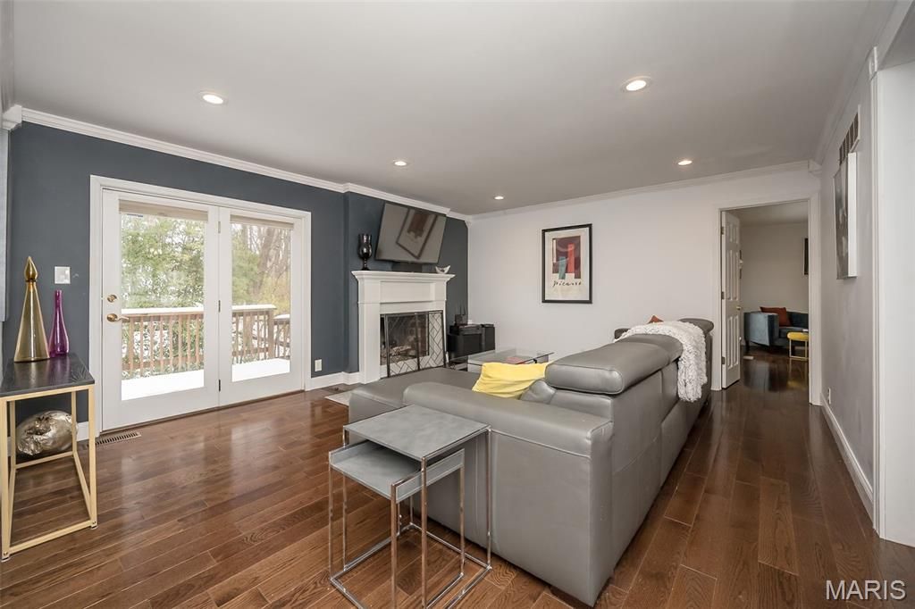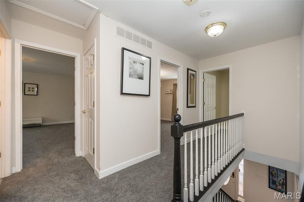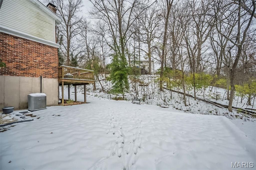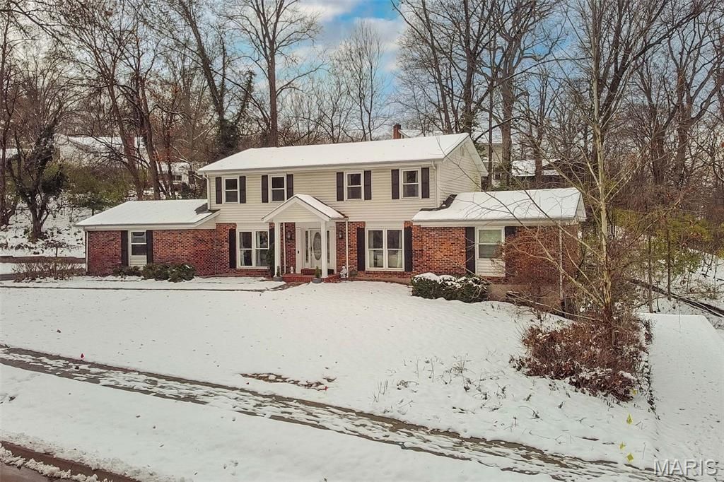 Discover this stunning five bedroom, one and a half story home on over a 3/4 -acre private lot backing to trees for serene views. Enjoy outdoor living with a covered patio and deck off the family room. Inside, walls have been opened to create a bright, open floor plan featuring newer hardwood floors throughout the main level. The spacious kitchen boasts a large island, new dishwasher and microwave, and convenient main-floor laundry. The main-floor primary suite includes a full en suite bath. Upstairs, find four additional bedrooms, new carpet, and two full baths. The walk-out lower level offers a rec room and plenty of storage space. Located in top-rated Parkway Schools, close to Faust Park, the Butterfly House, and with easy access to Hwy 40 corridor.