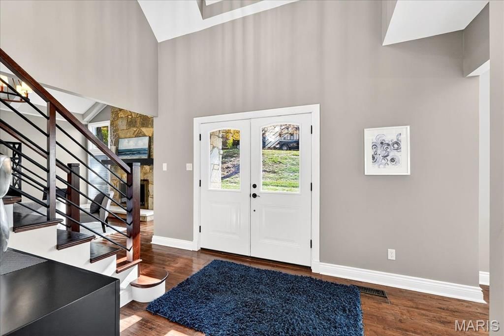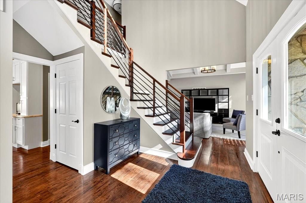 Welcome to 12627 Bradford Woods Drive! Tucked back in a quiet, tree-lined neighborhood, this beautifully updated home blends classic style with generous living spaces throughout. A two-story foyer sets the tone as you step inside, opening to both a formal living room and a bright sitting room, each with warm wood flooring and plenty of natural light. The kitchen is truly the center of the home, offering an impressive amount of space for cooking and gathering. Custom cabinetry, a large center island, stainless steel appliances, a wine fridge, and an easy, open layout make it a natural place to spend time. The formal dining room nearby adds the perfect touch for hosting. The main-floor primary suite provides convenience and comfort with a spacious bedroom, walk-in closet, and an ensuite featuring double vanities and a sleek, updated design. Upstairs, you'll find three additional bedrooms, each well-sized, and two full bathrooms. Downstairs, the walk-out lower level delivers an incredible 1,858 sq ft of finished space. With a large recreation room, wet bar, full bath, and flexible layout, it's ideal for entertaining, game nights, movie marathons, or extended guest space. Sitting on nearly three-quarters of an acre, the backyard feels like its own private retreat with mature trees and plenty of room to enjoy the outdoors. A side-entry two-car garage, additional driveway parking, and main-floor laundry add everyday convenience. Full of thoughtful updates and room to live, gather, and grow, 12627 Bradford Woods Drive is ready to welcome you home.
