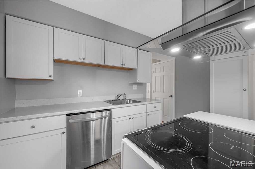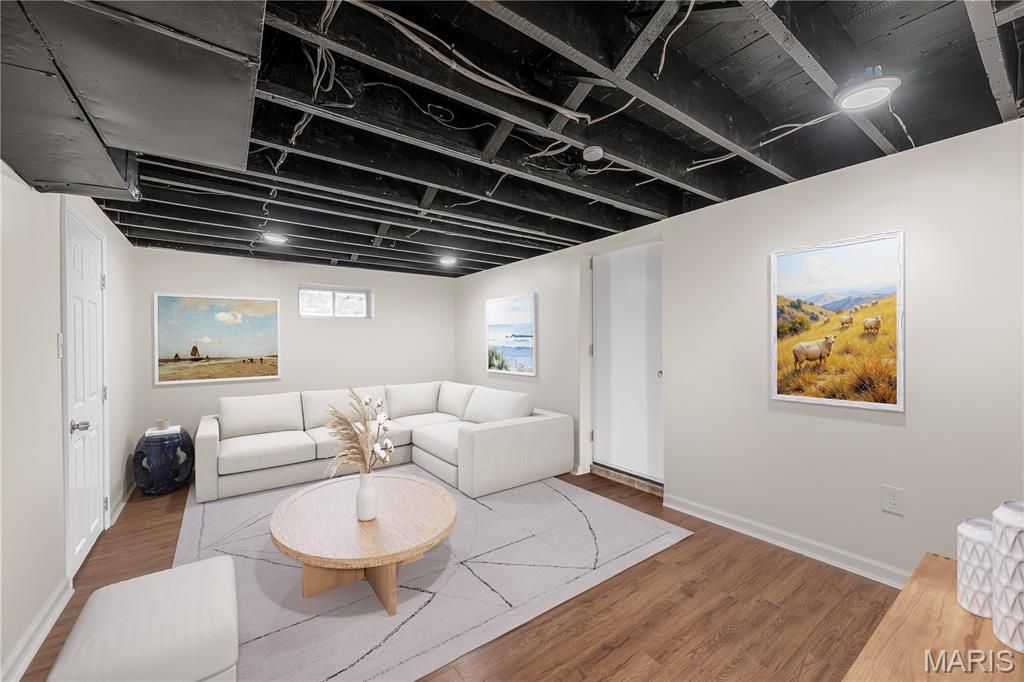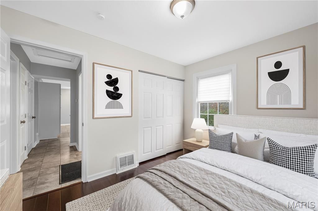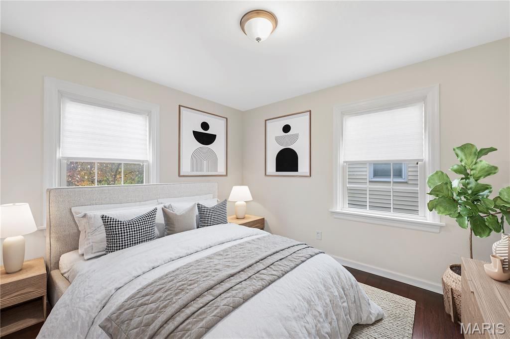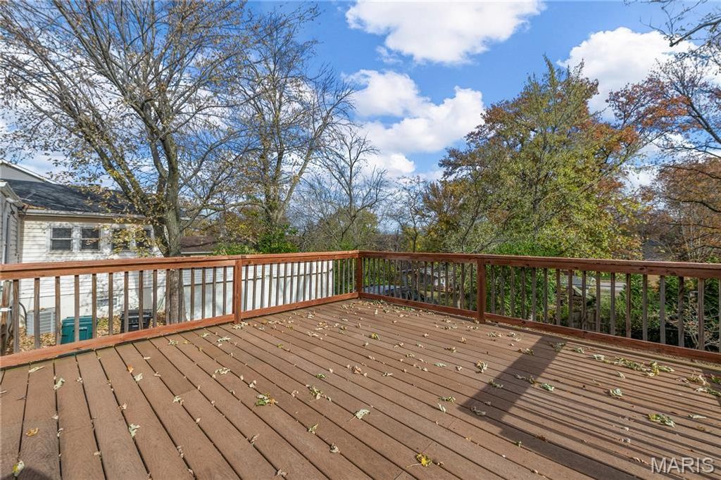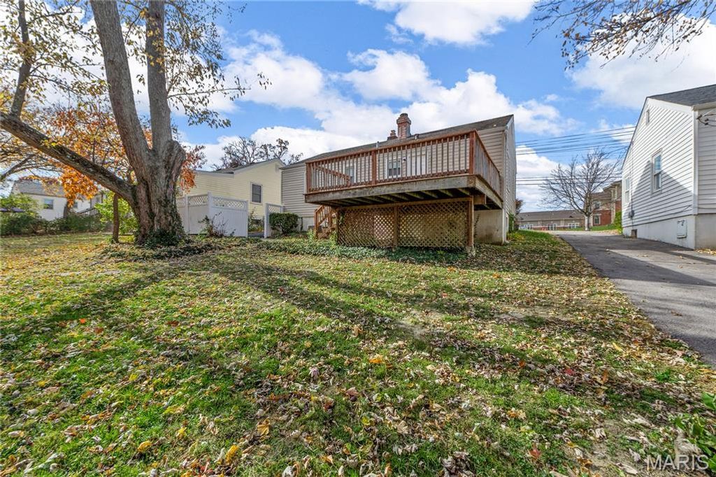 Welcome to this beautifully renovated 2-bedroom, 2-bath home in the heart of Kirkwood, offering modern updates, warm character, and access to award-winning Kirkwood Schools. Step inside to a bright, open living area featuring rich mahogany toned floors, fresh neutral paint, crisp white trim, and abundant natural light from oversized windows. A cozy marble-surround fireplace anchors the space, creating an inviting atmosphere perfect for relaxing or entertaining. The updated kitchen boasts white cabinetry, a center island, solid-surface counters, stainless vent hood, and a seamless flow into the dining area. Both the main-level bath and the lower-level bath have been refreshed with clean, modern finishes. Downstairs, enjoy a fully finished basement with recessed lighting, new flooring, and plenty of flexible space ideal for a family room, office, or guest area, plus additional storage. Outside, a new large deck extends your living space, overlooking a level yard perfect for gatherings, gardening, or play. Located just minutes from downtown Kirkwood, parks, dining, and shopping, this home offers the ideal blend of convenience and comfort. Move-in ready. Thoughtfully updated. Fantastic location.