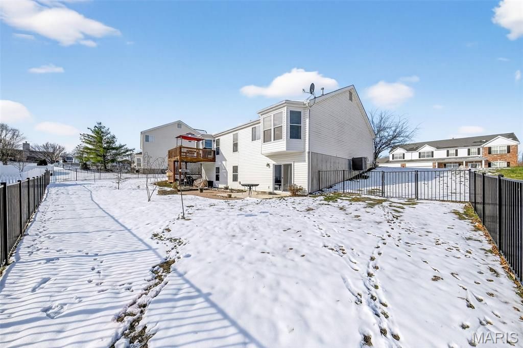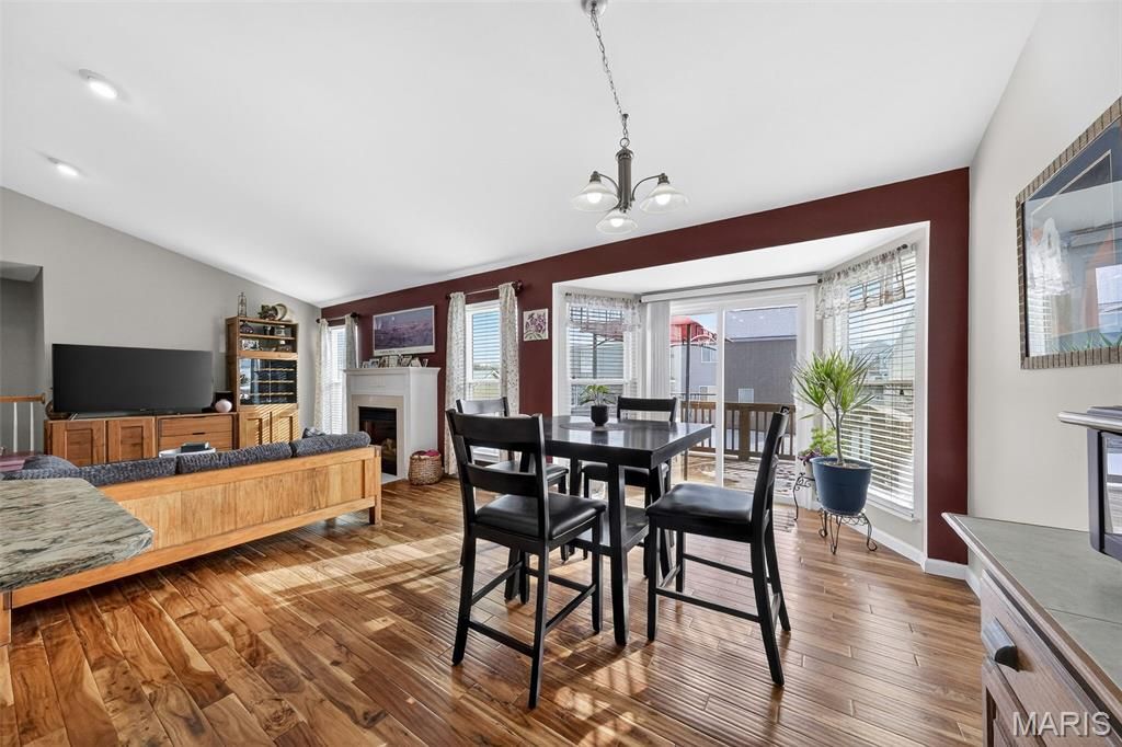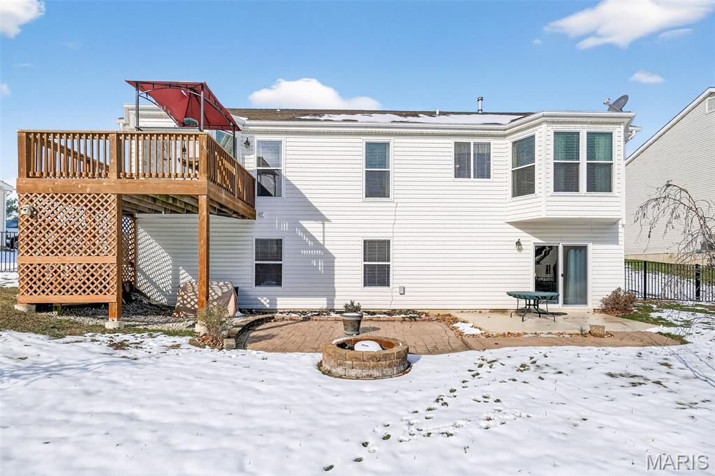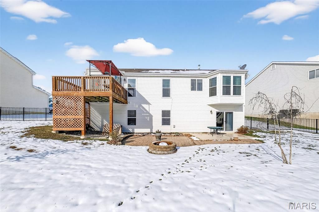 Elegant and impeccably maintained 4-bedroom, 3-full bath residence offering refined comfort and exceptional living space. Every bedroom features a walk-in closet for abundant storage. The vaulted great room is filled with natural light and highlighted by a beautiful fireplace, while newer main-level windows enhance both efficiency and style. The kitchen is adorned with newer granite countertops, 42" cabinetry, and a bay window in the breakfast room that opens to a deck. Warm wood flooring flows seamlessly through the dining area, family room, breakfast room, and hallway. The private primary retreat features its own bay window and a bath with separate soaking tub, shower and double bowl vanity. The partial builder finished lower-level boasts a 9-foot pour, family room, private bedroom with walk-in closet, and a generous sized full bath"”ideal for guests, in-laws, or extended living. Furnace and air conditioner were both updated in 2024 for added peace of mind. Outdoor living truly shines with black aluminum wrought-iron style fencing, deck, an extended stamped concrete patio, and a brick firepit"”perfect for relaxing or entertaining in style. This home offers space and thoughtful updates throughout"”an absolute must-see!