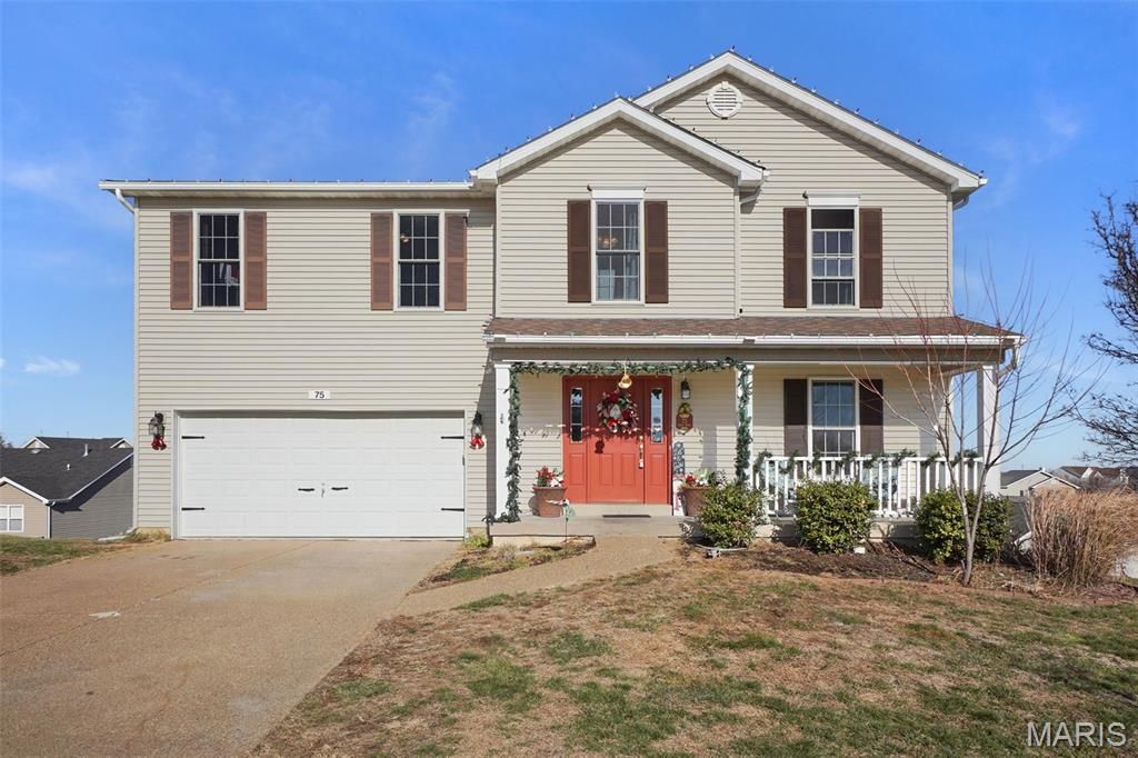 Amazing location to plant some roots! From the moment you step onto the inviting front porch, you'll feel right at home. The entire house has updated flooring throughout with luxury vinyl plank on the main level and brand-new carpet on the stairs and in all the bedrooms. The kitchen opens to a separate dining area and makes the perfect hub for daily life, while the comfortable living room invites you to unwind after a busy day. The unfinished walk-out basement provides great potential for future expansion with a sliding glass door and also provides plenty of extra storage. Timberland High School is just a short walk away from this home not to mention it is so close to all the shopping and restaurants in Wentzville and Lake St. Louis. Don't miss out on this home, schedule a showing today!