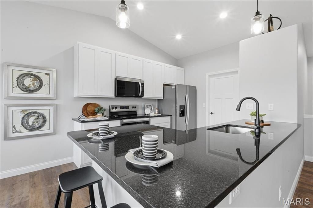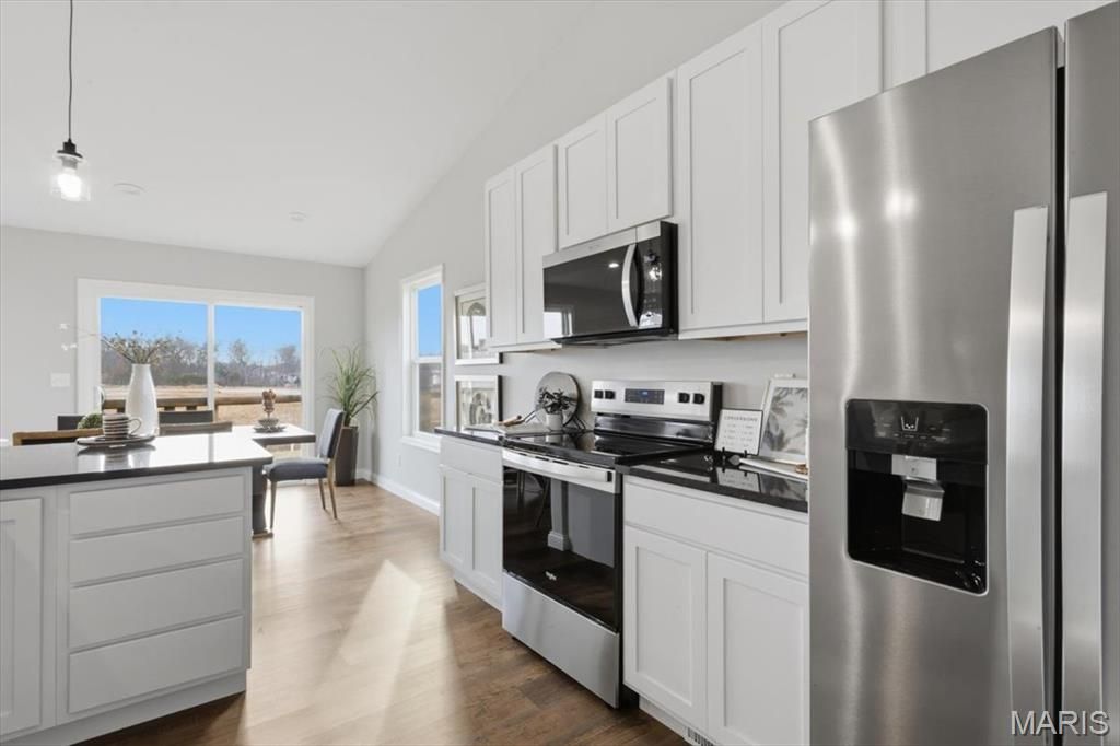 NEW NEW NEW and loaded with every upgrade imaginable! This stunning ranch home features an open floor plan filled with an abundance of natural light, soaring vaulted ceilings, bullnose-edge quartz countertops, stainless steel appliances, and 42" soft-close cabinetry. A custom, neutral paint palette complements the luxury flooring that flows throughout most of the home. You'll love the framed windows, tall baseboards, walk-in closets, and beautifully upgraded bathrooms. The walk-out lower level is ready for your finishing touches and already includes a full bath rough-in. Additional highlights include upgraded light and water fixtures throughout, a convenient main-floor laundry, and upgraded carriage-style garage doors with openers. A fully electric, true turnkey home with style, quality, and thoughtful details at every turn. Built by exceptional Ivie League Homes with builder warranties still in place! Professional photos, Dec 21st.