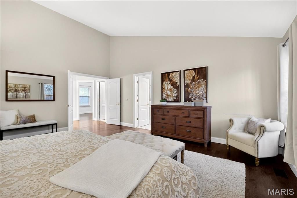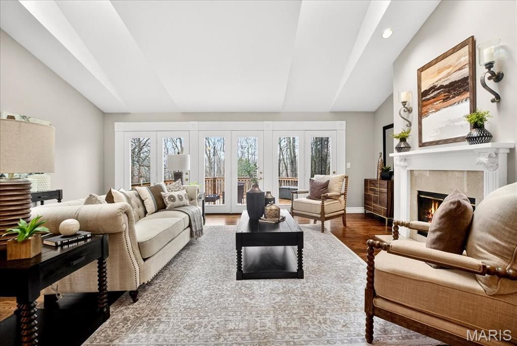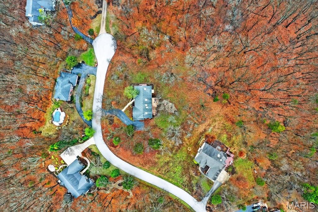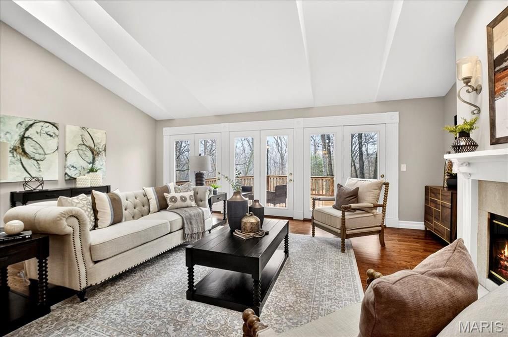 Don't miss this stunning 3BR/3.5BA Ranch set on a private 3-Acre lot in Wildwood. Tucked on a cul de sac lot, enter to beautiful hardwood flooring throughout the main level, an open Formal Dining area leading to the large vaulted Great Room with sky lights, a double sided wood burning fireplace and a wall of French doors leading to the back deck and yard. The Kitchen boasts a Breakfast Room, vaulted ceiling, crisp white cabinetry, SS Appliances, Center Island, walk in pantry and skylights for plenty of natural light. The Primary Suite also features a vaulted ceiling, large walk in closet and En Suite bath. Expand your living space with the large Finished w/o Lower Level, with a full bath, storage and access to the private back yard. Other features include a main floor laundry with poss. dog wash station, side entry garage, public water, updated septic tank and drain field (2020) and vinyl siding with covered soffits. Located in the sought after Rockwood School District, this home offers the perfect blend of space, functionality and peaceful surroundings.