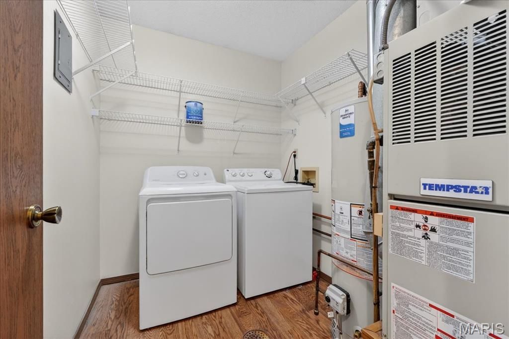 Step into this meticulous ranch condo offering 2 bedrooms, 2 full baths, and 1,238 square feet of comfortable, single-level living. A well-designed layout features a spacious kitchen with stainless steel appliances and abundant workspace, flowing into a separate dining area and family room with a gas brick fireplace and mantle, ideal for entertaining. Just off the main living space, a convenient main-floor laundry room includes a washer and dryer (included with sale). The spacious primary suite offers a walk-in closet and private full bath, while a second bedroom and full bath provide flexibility for guests or a home office. Newer windows and a newer water heater add efficiency and peace of mind. An attached 2-car garage with additional driveway parking completes the home. Enjoy association amenities including a pool, pickleball and tennis courts, all just minutes from nearby walking trails, shopping and restaurants!