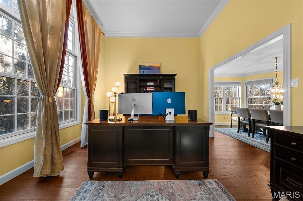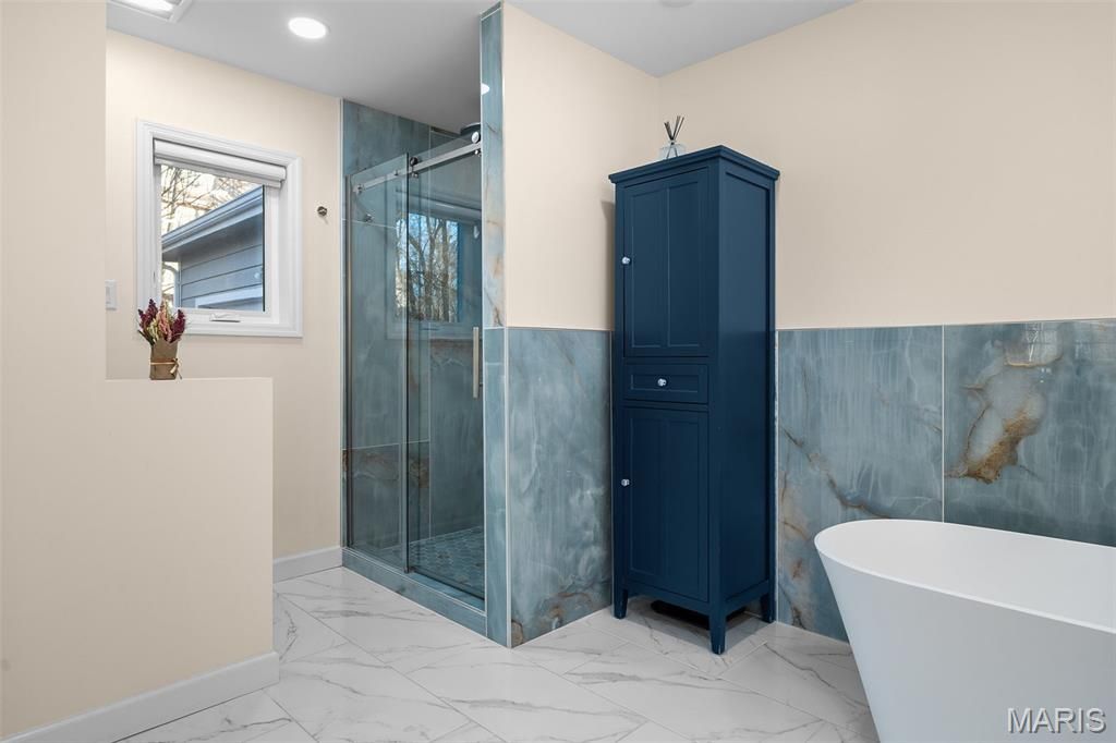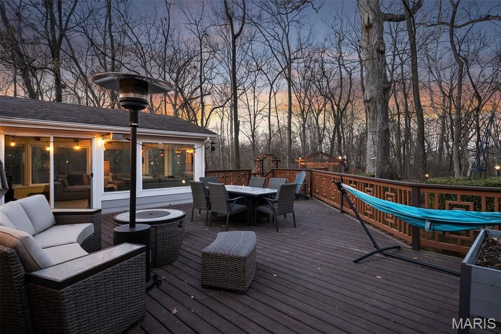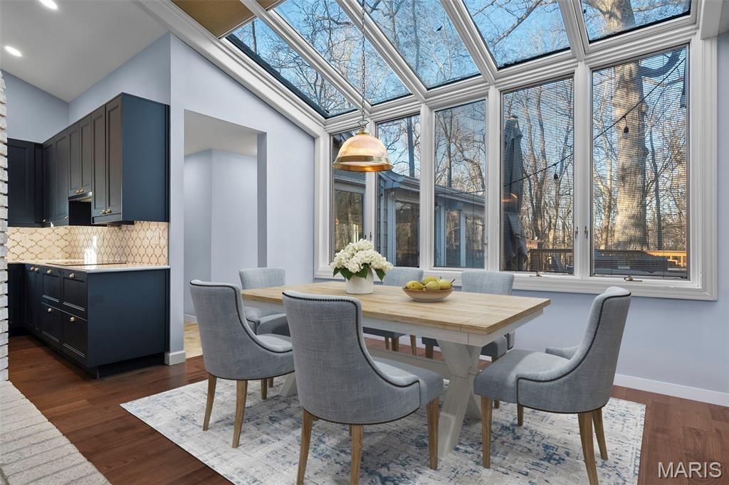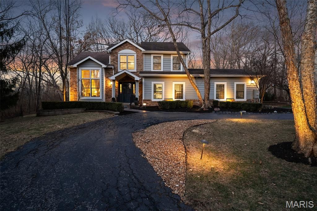 Ultimate privacy in a wood sanctuary, minutes from top schools, shopping, highways and restaurants in prestigious Creve Coeur. This Exceptional renovation blends luxury and modern convenience, located at the end of the cul-de-sac on a private wooded acre backing to Millenium Park. Enter through a dramatic marble foyer to enjoy the sophisticated spaces of this 1.5 story home. The Living Room is a focal point with soaring ceiling, wide-plank flooring and a see-through fireplace. The kitchen is a chef's dream with premium appliances and custom finishes, butler's pantry and easy access to the formal dining room. The breakfast room is currently being used as a family room to enjoy the woodburning fireplace and views of the lush landscape. The 1st floor primary suite has access to one of two decks, walk-in closet and a spa-like bath. A beautiful four-season room features floor to ceiling windows to enjoy your private oasis. Need work space? A beautiful study is just off the foyer. First floor laundry has custom cabinetry and a dog washing station. The 2nd floor features 3 bedrooms, and updated bath. A finished LL with luxury vinyl flooring, updated full bath, sleeping area and kitchenette provides additional quality living space. Energy-efficient upgrades include High-efficiency Lennox HVAC, 80-gallon tankless HWH, and Level 2 EV charger for comfort and savings. An oversized 2 car garage completes this stunning home. Your buyers won't want to miss the one. See the attached listing for additional updates.