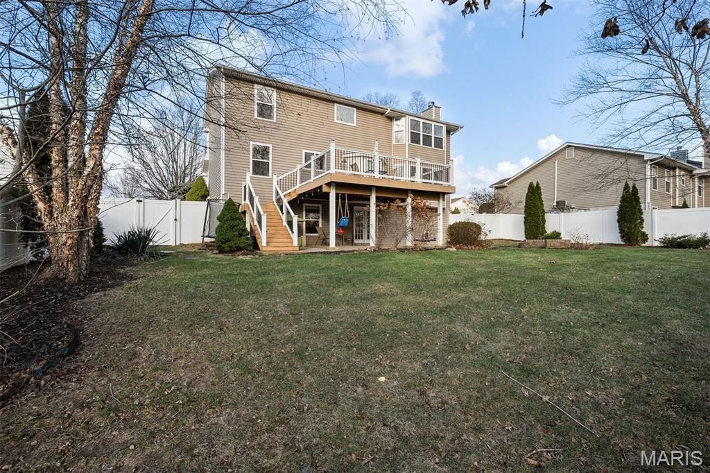 Conveniently located off of Peine Rd, this beautifully updated 4-bedroom 3.5-bathroom home offers over 2,700 sqft of total living space plus a large and extremely private backyard! Step inside and you will find stunning hardwood flooring throughout the entire home! The massive kitchen is a chef's dream with an abundance of cabinet space, a center island with bar seating, stainless steel appliances, a pantry, and even a window seat overlooking the private backyard. The kitchen opens to both a formal and informal dining space, a living room with a bay window & fireplace, and access to the huge deck, making the home perfect for entertaining. A laundry room and powder room complete the main level. The primary suite is cozy and inviting with a vaulted ceiling, walk in closet, ensuite bathroom with double sinks and corner soaking tub. Three bedrooms and an updated bathroom complete the second level. The finished walk-out lower level is perfect for whatever your needs may be; additional living space, home gym, home office, guest space, complete with a full bathroom, etc. There are also multiple storage closets and a large unfinished storage room in the basement. The private, level & fully fenced backyard leaves nothing to be desired, featuring a large composite deck, huge poured concrete patio, inground sprinkler system, stone fire pit, and plenty of landscaping that adds to the feeling of complete privacy you get backing to woods. Newer roof in 2023. 2-car garage with overhead storage. Walking distance to Peine Ridge Elementary and the water park!