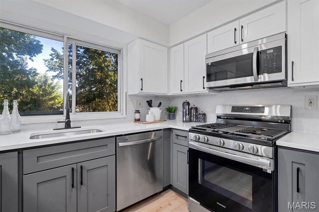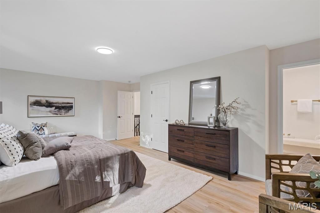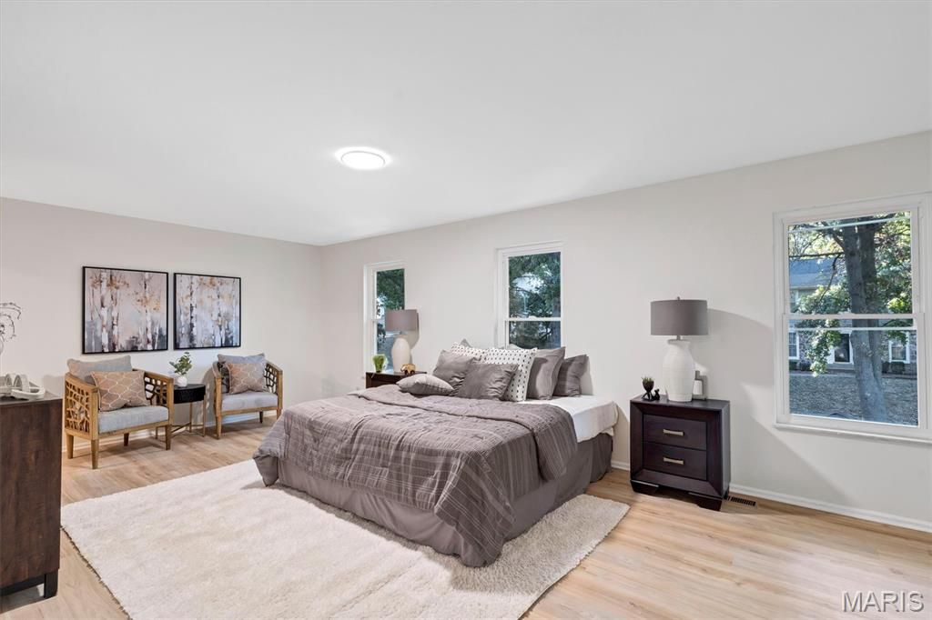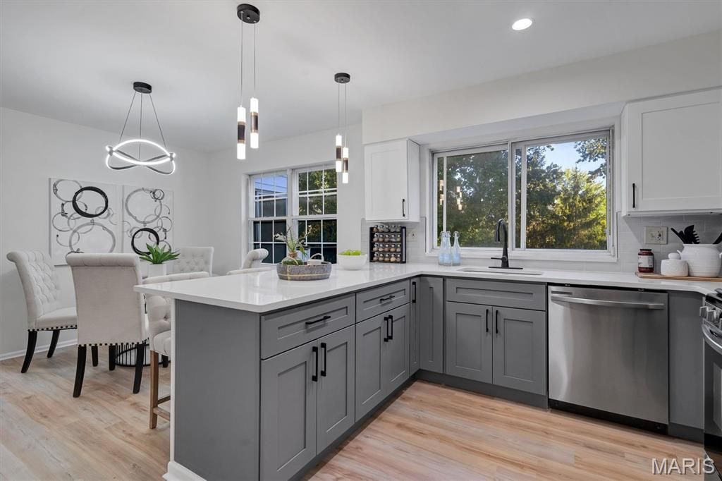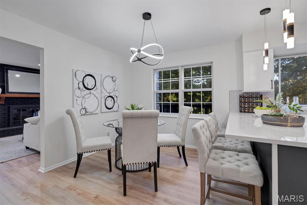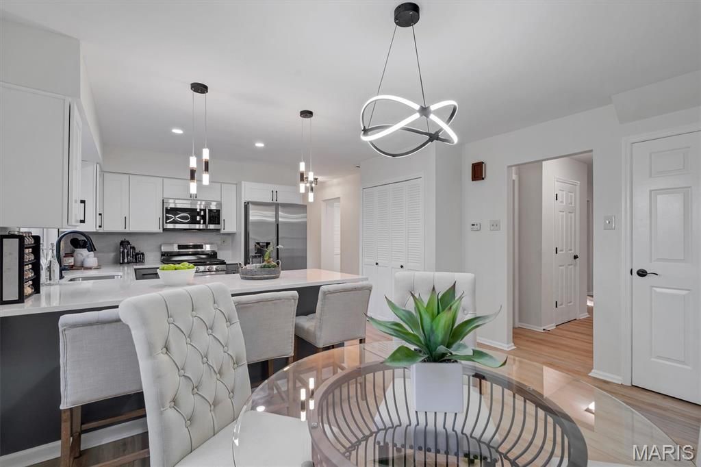 Welcome to a beautifully reimagined 4-bedroom, 3.5-bath home offering refined living space with high-end updates. The main level impresses with a bright living room, formal dining room, and a spacious family room that opens to a stunning magazine-worthy kitchen featuring professional stainless appliances, quartz countertops, custom cabinetry, and designer lighting. The primary suite offers exceptional comfort with generous closets and a spa-inspired bath with custom tile and a glass shower. Three additional bedrooms and a full bath complete the upper level. The fully finished lower level adds valuable living space with a large recreation area and full bath. Outdoors, enjoy great curb appeal, an oversized two-car garage, a large backyard, and a peaceful deck perfect for entertaining. Located near Ballwin's pool and golf course. This is a rare find"”schedule your tour today.