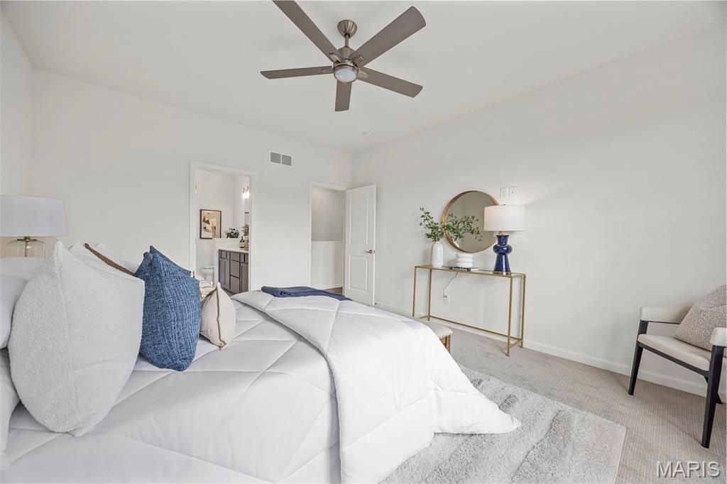 SKIP THE WAIT"”this brand NEW Fischer & Frichtel 3 Bd/2Bth villa is move-in ready and designed for effortless living. With an open floor plan and refined finishes throughout, it offers modern comfort and elevated style. Inside, enjoy 9' ceilings throughout, a spacious great room, and a bright breakfast area accented by large windows that fill the home with natural light + enjoy your morning coffee on the maintenance free deck! The kitchen is both stylish and functional, featuring a large island w/ quartz countertops, 42" soft-close cabinetry, and ample storage. The primary suite is a true retreat with an oversized walk-in closet, linen closet, and a beautifully appointed bath with a tall double vanity, marble-surround shower with a built-in seat, and elegant finishes. Main-floor laundry adds everyday convenience. The walk-out basement offers exceptional future potential with a 9' pour, rough-in for an additional bathroom, and the opportunity to add a future bedroom and expanded living space"”perfect for guests, a home office, or additional entertaining. The walk-out leads to a large concrete patio, extending your living space outdoors. Tucked away on a quiet cul-de-sac, this villa also includes lawn care and snow removal through the HOA, allowing for truly low-maintenance living. Brand new, thoughtfully designed, and full of possibilities"”this home is ready to impress.