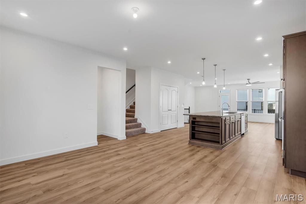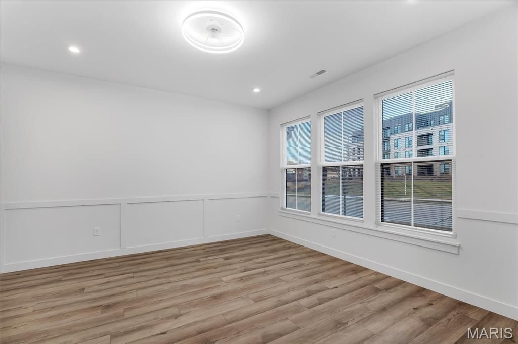 This newly built, never-occupied three-story end-unit townhome is ideally located in the highly sought-after area in Chesterfield. Nestled in a tranquil community setting, the home offers abundant natural light throughout. The ground level provides a welcoming entry with excellent flexibility, featuring a bedroom, full bathroom, and space ideal for a large mudroom or additional living area. On the main level, enjoy an open-concept floor plan designed for both everyday living and entertaining. The expansive quartz island anchors the kitchen and opens seamlessly to the living and dining areas. The third floor features a modern primary suite with a private ensuite bathroom, two additional bedrooms, and a third full bath. A conveniently located laundry area completes the upper level, perfectly positioned to serve all bedrooms. This home offers the best of maintenance-free living, exceptional location, and thoughtful design. HOA fees are included in the list price. Location highlights: End unit, ground-level entry,
