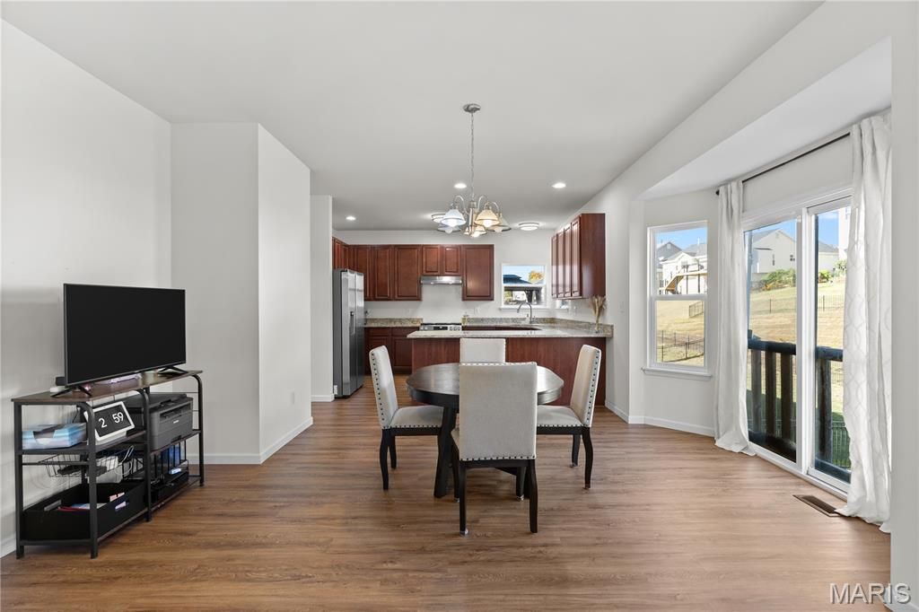 Price Adjusted! Here's your opportunity to buy in Ballwin at a great price and value! Sellers are very motivated! This updated 4 Bedroom, 4 Bathroom two-story nestled in the highly sought after Arbor Valley subdivision. Elegant entry foyer leads to a living room used as Office/Den or formal dining room. Updated Kitchen boasts 42" cabinets, new Granite countertops, walk-in pantry, gas stove & hood. Enjoy your mornings the Breakfast room with large Bay windows. The spacious great room showcases a gas fireplace, 5-window Bay; Relax in your Sitting room in the Primary suite with coffered ceilings, Walk-In Closet, Luxury Bath, Double Sink, separate Shower & Tub and 3 add'l Bedrooms complete the upper level; This home features an abundance of windows & natural light! 9 ft ceilings on the main level provides an open & airy feel. Great for entertaining! Partially finished Walkout Basement w/Full Bath; and Bonus Room with an Egress window! Easily updated to be the 5th Bedroom or can used as an office or play area! 2024 - Updated LVP Floors, Granite Countertops, Water Heater, Deep Sink & Faucet, Gas Stove, Range Hood, updated all 4 Bathrooms, Professionally Painted Interior and Fixtures. 2023 -Roof; In-ground sprinkler system; Main Floor Laundry added! 3 car garage updated. Conveniently accessible to everything! Walking distance to Oak Brook Elem. Priced to move! Don't miss out on this great opportunity in Ballwin!