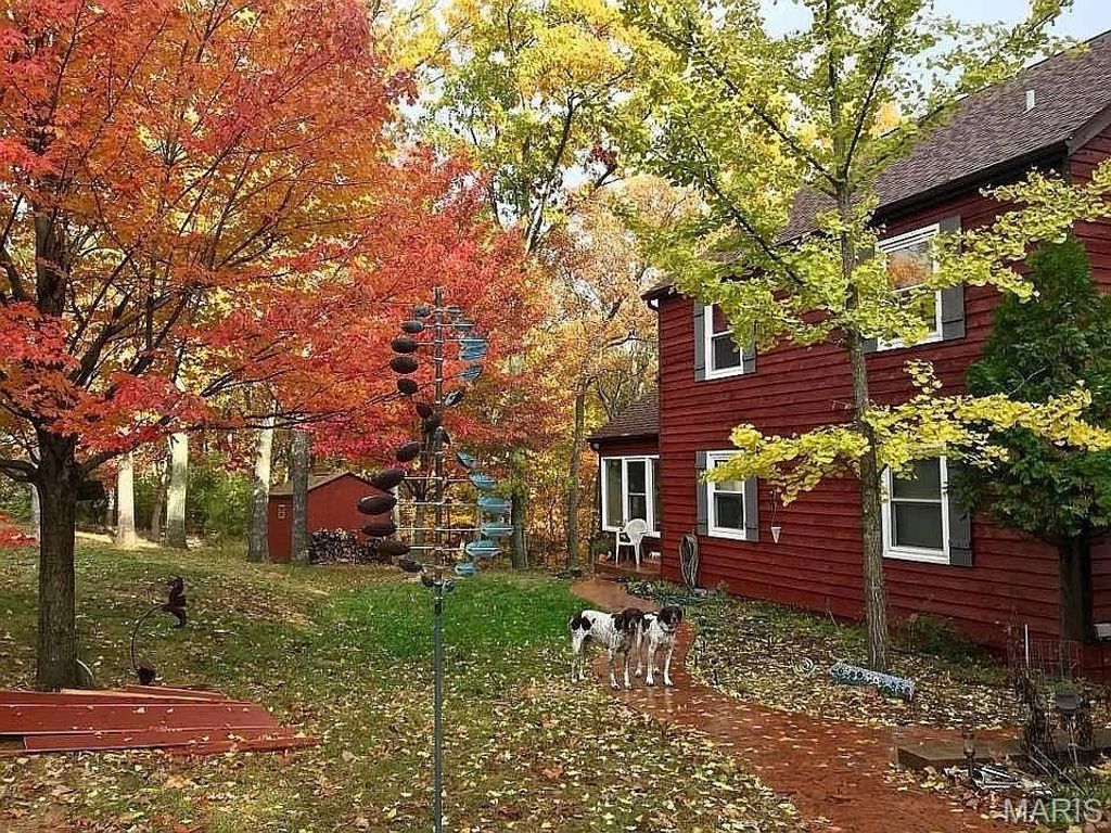 Welcome to 1570 Old State Rd, a truly one-of-a-kind Wildwood masterpiece that combines artistic charm, smart design, and serene natural beauty. Nestled on 3 acres of wooded property with direct access to public land and the Rock Hollow Trail, this home offers nearly 2,500sqft of delightful living space, 4 bedrooms, 3 full baths, and countless creative touches. Inside, you'll find a layout as unique as the land itself. The main floor features a cozy office with a cedar wall, a shiplap ceiling and a barn door for privacy, a sunken living room with a wood-burning fireplace and soaring 2-story distressed wood hearth, and large windows that frame stunning valley views. The space is anchored by a dramatic 17-foot vaulted ceiling with stained glass windows, filling the room with natural light and architectural flair. The open kitchen boasts plenty of quartz counters, an island with breakfast bar, stainless steel appliances, and an adjacent dining area. The main floor bedroom features a stunning custom-built Murphy bed, built-ins, and a reading bench, making it a cozy guest haven, hobby space, or flex room. Upstairs, two additional bedrooms, a full bath, and a whole house fan provide quiet retreats or home office possibilities. The primary suite on the walkout lower level is a true sanctuary with a shiplap ceiling, feature wall, walk-in closet, and French doors leading to the covered lower deck with wooded views. The en-suite bathroom includes dual sinks, a gorgeous jetted tub, and separate shower. There is also a spacious rec room with funky carpet tiles & wood stove, ideal for games, workouts, or cozy winter nights. Outside, you have a large detached 2-car garage, an oversized 1-car carport, and a HUGE versatile, vaulted, heated workshop/studio space complete with 240v power, a subpanel, and endless potential for creative projects, home-based business, or fitness use. There's also a large tool shed, and a connector trail to the Rock Hollow Trail, just steps away. The home is fully electric and energy-efficient, thanks to paid-off solar panels (2022) and a Tesla battery backup system, giving you peace of mind during power outages. Other key updates include a new water heater (2025) and new roof (2026). You'll also appreciate the ample storage throughout the home and other buildings. This home is full of artistic energy, practical upgrades, and unforgettable views. Whether you're looking to create, relax, explore, or entertain....your sanctuary is waiting. Just minutes from Wildwood conveniences, yet a world away from the hustle. "Don't Sleep on Your Dream Home, Sleep in It!" OPEN HOUSE Saturday, January 24th from 1-3.