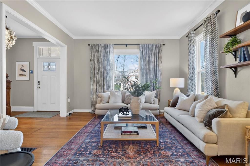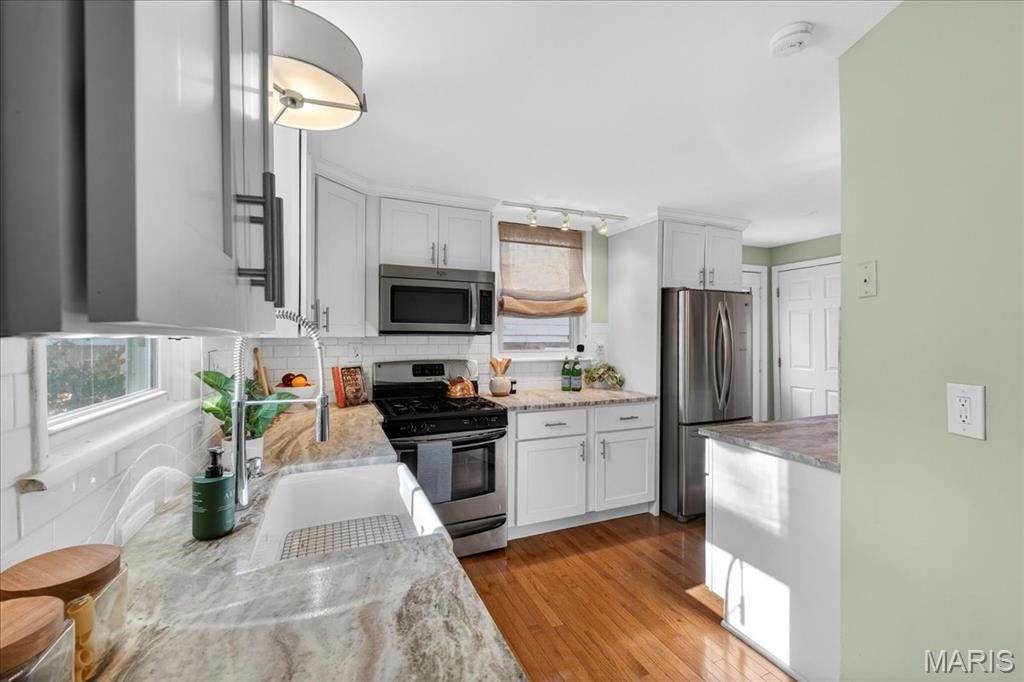 Charming Webster Groves two-story home blending historic character with modern updates, ideally located in the desirable Tuxedo Park neighborhood. Beautiful wood floors and tall ceilings, along with newer windows and doors, highlight a spacious dining room, an inviting living room, and a versatile bonus room just off the dining area"”perfect for entertaining or everyday living. The updated kitchen features white soft-close cabinetry, subway tile backsplash, granite countertops, a farmhouse sink, stainless steel appliances, and a breakfast bar that opens to the dining room. Upstairs, the generous primary bedroom offers multiple closets, a ceiling fan/light, and direct access to the full bath with dual sinks, a separate shower with a bench, and a soaking tub. Two additional bedrooms complete the second floor. Outside, enjoy a large fenced yard and stamped concrete patio"”ideal for relaxing or hosting gatherings. Recent updates include a water heater (2020), electric panel (2018), and sump pump (2024). Conveniently located just a short walk to Avery Elementary School.