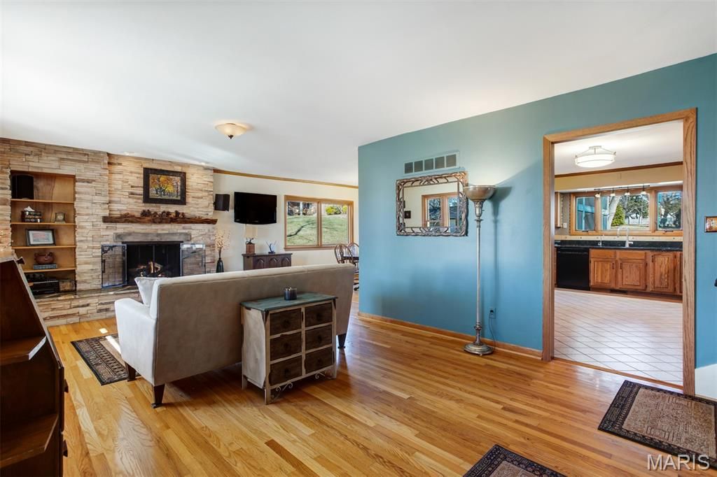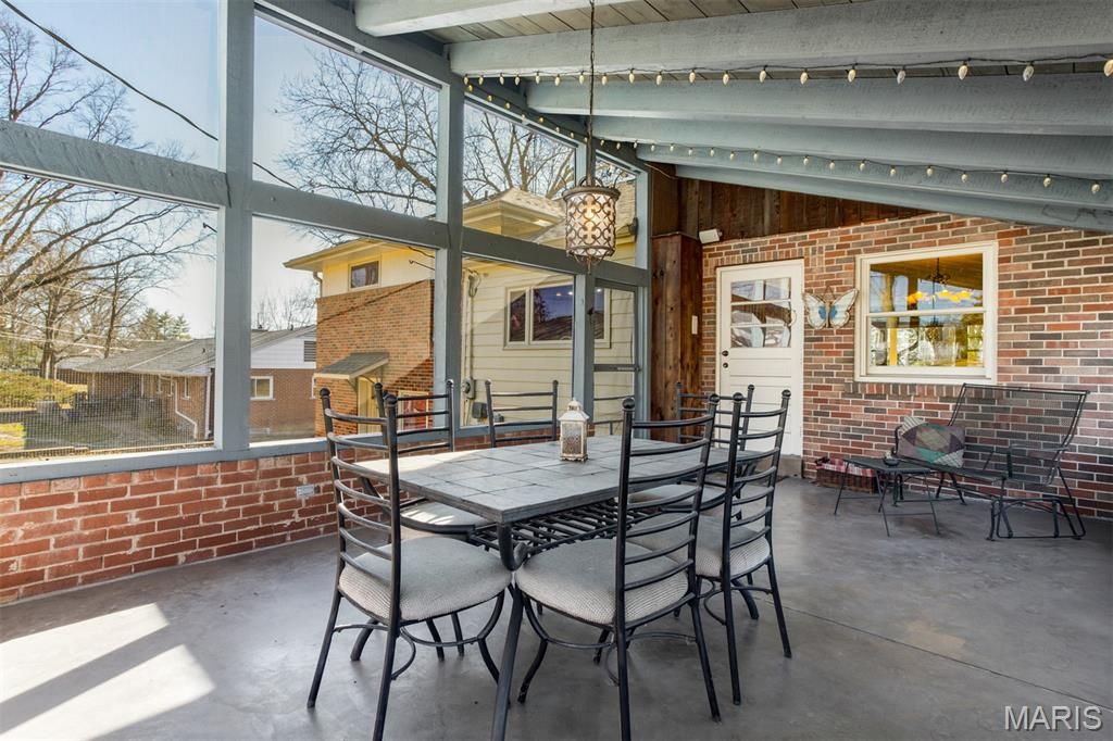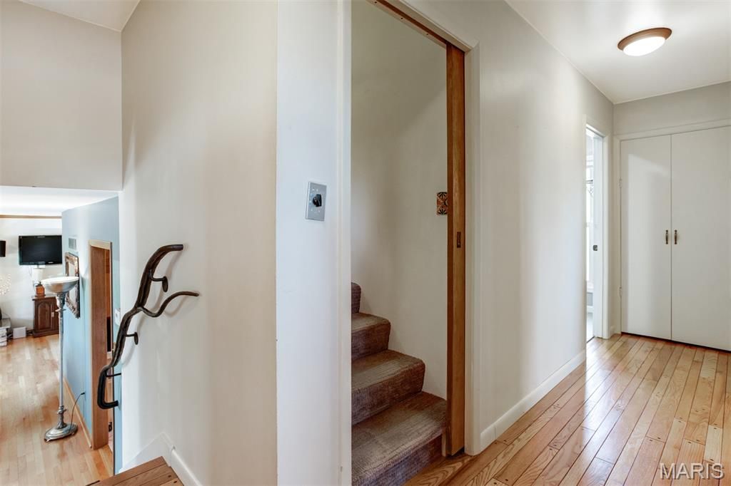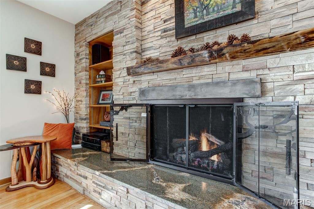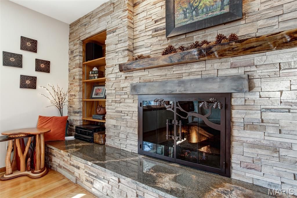 Charming Split-Level Home in Kirkwood - Full of Light and Character Natural light fills this beautifully maintained split-level home in a quiet Kirkwood cul-de-sac. Gleaming wood floors and an open main floor create a warm, welcoming atmosphere where the kitchen, dining area, and living room flow seamlessly together. A striking natural stone fireplace with live-edge wood mantle and a designer glass-and-iron screen anchors the main level "” perfect for cozy nights in. Upstairs, you'll find three comfortable bedrooms and two full baths, including a spacious primary suite with a walk-in closet and elegant stone finishes. The lower level is made for entertaining, with a stylish wet bar featuring under-lit stone counters, premium wine fridge, and built-in cabinetry. Enjoy a movie night in the Video Family Room with 5.1 surround sound"”or open the doors to the large screened porch overlooking a lush vegetable garden, open play area, and a practical storage shed. The two-car garage (built in 2015) includes a 220v outlet for EV charging. Additional off-street parking for two vehicles makes hosting easy. Other highlights include: Modern Pella double-pane windows throughout Brand new roof (2021) Versatile basement space ideal for a home office, workshop, or craft area Expansive backyard ideal for gardening or sports All within walking distance to Robinson Elementary, Meramec Community College, and scenic trails along the Meramec River and Simpson Lake. This home combines comfort, craftsmanship, and convenience"”a true Kirkwood gem.