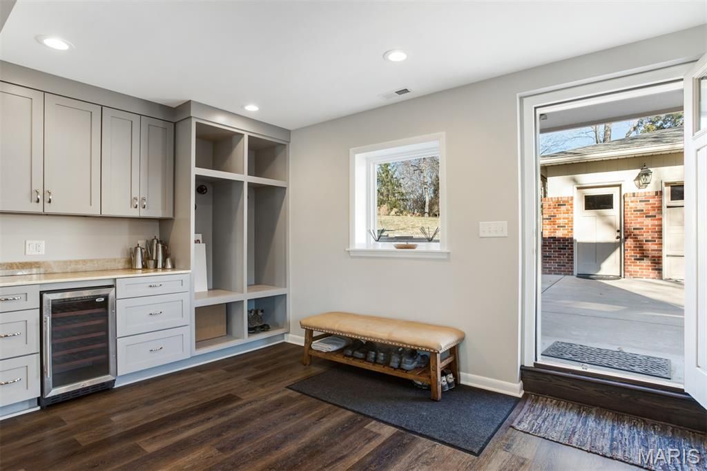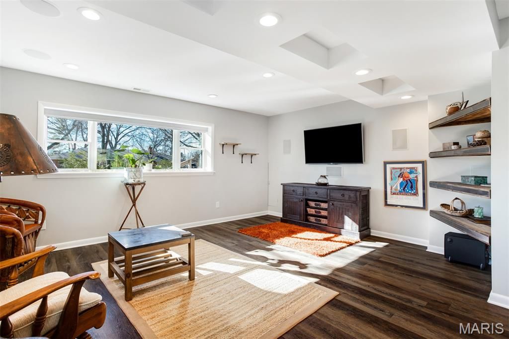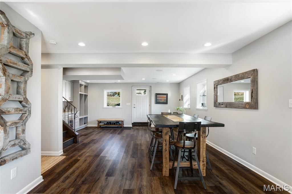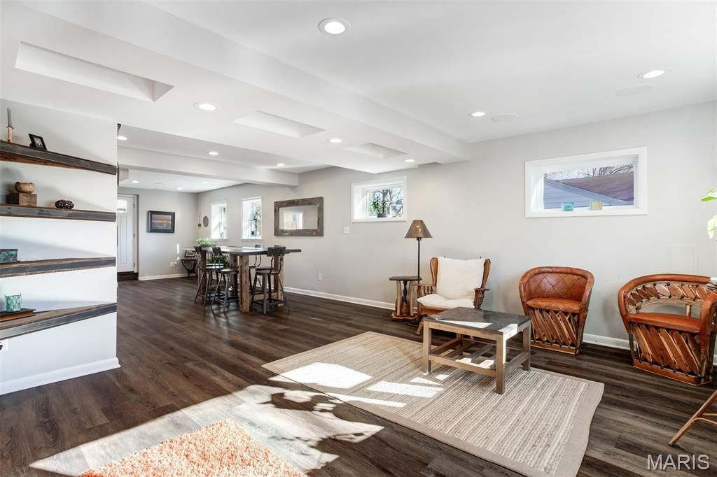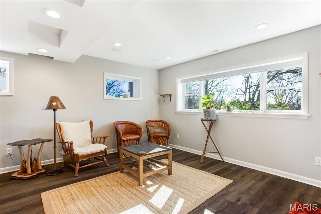 Charming Split-Level Home in Kirkwood - Full of Light and Character Natural light fills this beautifully maintained split-level home in a quiet Kirkwood cul-de-sac. Gleaming wood floors and an open main floor create a warm, welcoming atmosphere where the kitchen, dining area, and living room flow seamlessly together. A striking natural stone fireplace with live-edge wood mantle and a designer glass-and-iron screen anchors the main level "” perfect for cozy nights in. Upstairs, you'll find three comfortable bedrooms and two full baths, including a spacious primary suite with a walk-in closet and elegant stone finishes. The lower level is made for entertaining, with a stylish wet bar featuring under-lit stone counters, premium wine fridge, and built-in cabinetry. Enjoy a movie night in the Video Family Room with 5.1 surround sound"”or open the doors to the large screened porch overlooking a lush vegetable garden, open play area, and a practical storage shed. The two-car garage (built in 2015) includes a 220v outlet for EV charging. Additional off-street parking for two vehicles makes hosting easy. Other highlights include: Modern Pella double-pane windows throughout Brand new roof (2021) Versatile basement space ideal for a home office, workshop, or craft area Expansive backyard ideal for gardening or sports All within walking distance to Robinson Elementary, Meramec Community College, and scenic trails along the Meramec River and Simpson Lake. This home combines comfort, craftsmanship, and convenience"”a true Kirkwood gem.