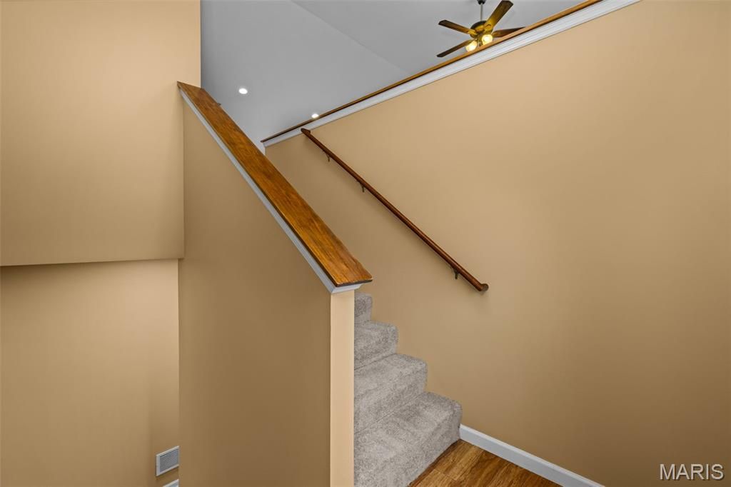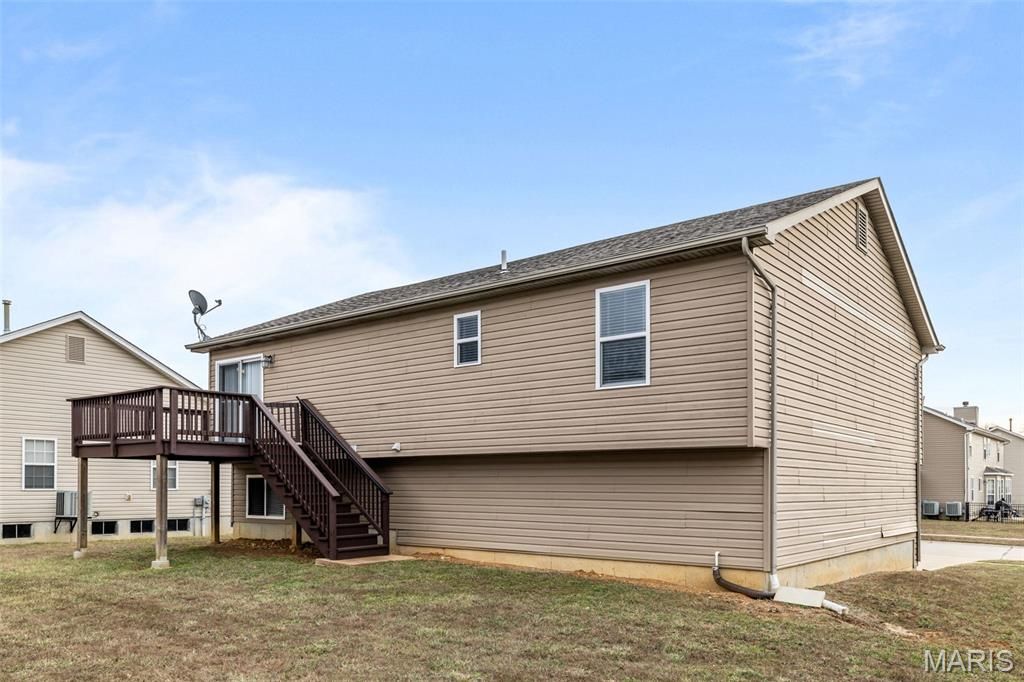 MUST SEE HOME IN WENTZVILLE SCHOOL DISTRICT!! Meticulously maintained 3 bed, 3 bath, split-level in the sought after Shadow Ridge Estates. As you walk through the front door there is an inviting foyer, up the stairs you will find the massive main living area. This home is the definition of an open floor plan.. perfect for entertaining. Perks include: soaring vaulted ceilings throughout all main living(kitchen/family/dining), granite counter tops, tons of cabinets/counter space, kitchen island w/overhang, stainless steel appliances, maintenance free deck off kitchen with steps to large backyard, main floor laundry, master suite with walk in closet and double sinks, new carpeting, fresh paint.. the list goes on! The lower level provides access to the 2 car garage, a full bathroom, and a partially finished blank canvas ready to become an office, playroom, bedroom, family room, WHATEVER.. Come make this house your home!! **Great Location & Only Minutes From Schools, Shopping, Hwy 70 & Hwy 40/61**