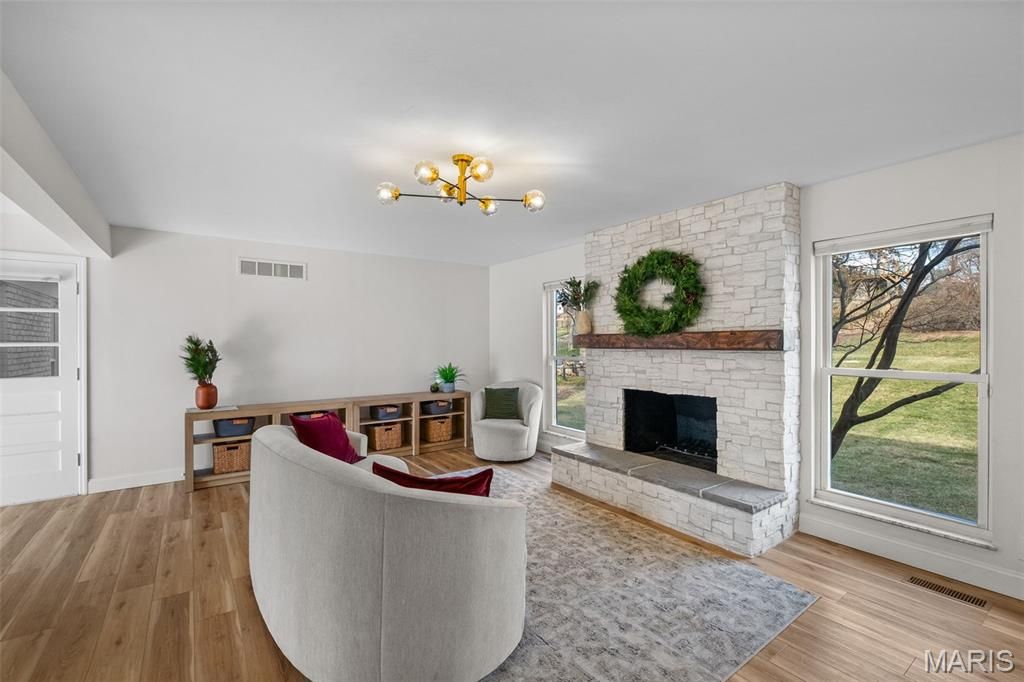 This stately home offers a peaceful, bright, and airy feel the moment you walk in. Completely renovated in 2023, neutral paint tones throughout create a clean backdrop, making the home easy to customize to your style. The main level features a formal living room with custom trim and crown molding and a formal dining room with refinished original hardwood floors. The welcoming great room includes a stacked stone fireplace with a custom mantle and opens to the updated kitchen with a center island, solid surface countertops, and custom cabinetry with soft-close drawers. A main-floor laundry room and a stylish first-floor half bath add everyday convenience. Upstairs, refinished hardwood floors continue through three additional bedrooms and a spacious primary suite with two closets and a bath featuring a soaking tub, dual vanities, and a center shower with dual shower heads. The partially finished lower level provides additional living space and storage. Located in a quiet neighborhood with easy access to major thoroughfares, this home offers the convenience buyers want with the privacy they appreciate. With the major updates already complete, all that's left to do is unpack and settle in"”don't miss the opportunity to make this home yours!