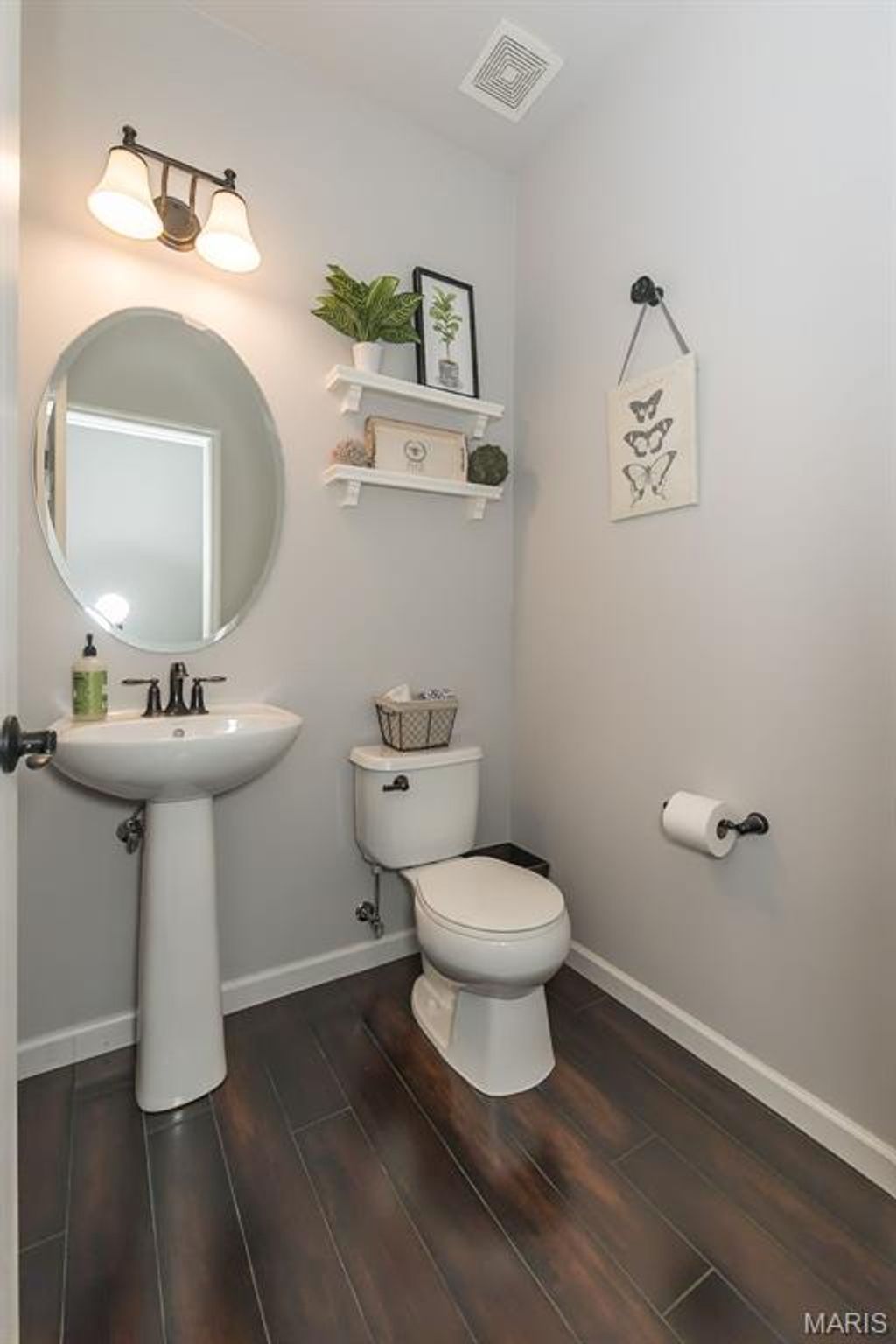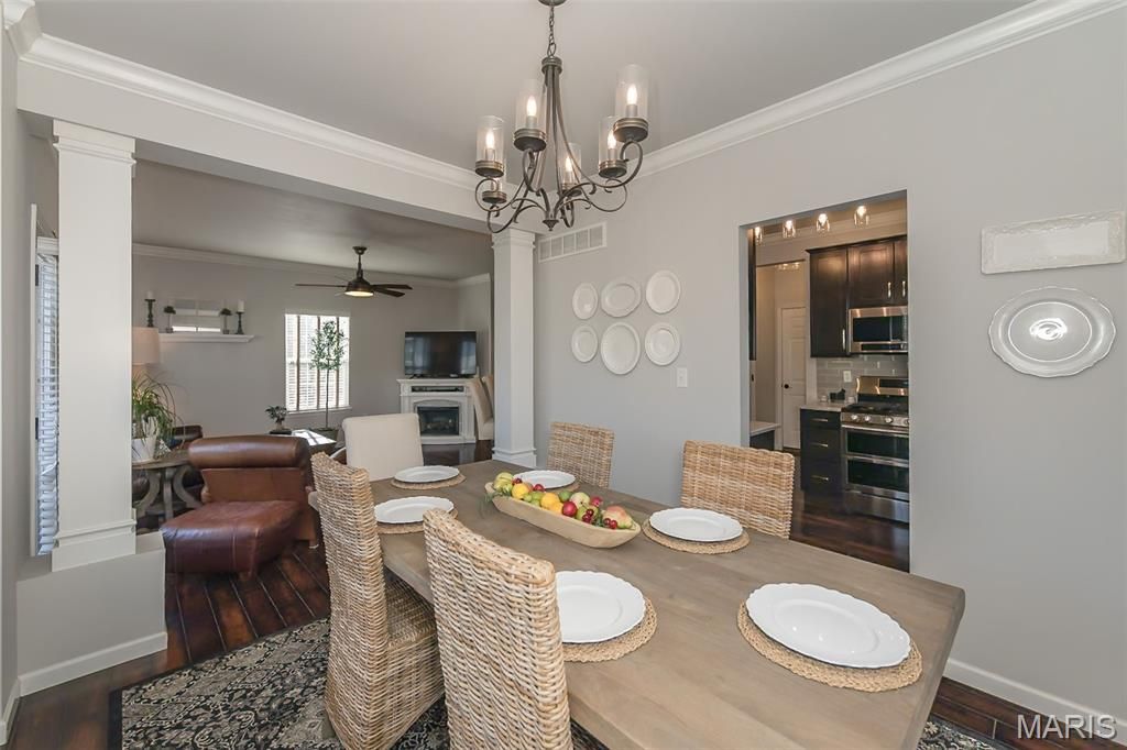 Sophisticated design, maintenance-free lifestyle and an ideal location in Wildwood's Town Square area--what more could you want? This stunning, move-in ready McBride-built home in the Rockwood School District features a wonderful open floorplan, lovely Craftsman-style architectural details and loads of natural light. The welcoming foyer leads to an open great room with 9-foot ceilings and large windows. A quartz-topped island separates the kitchen, with newer backsplash, 42" custom cabinetry, designer corbels and stainless appliances. The separate dining room features arched doorway, lovely columns, a tray ceiling and looks out at the lovely cedar deck and level backyard--just made for entertaining! A newly-updated laundry includes gorgeous custom cabinets. Upstairs, the large primary suite is a welcome retreat, with tray ceiling, walk-in closet and updated bathroom with soaking tub, separate shower and custom storage. Two additional bedrooms boast walk-in closets, with newer carpeting throughout the second level, and a hall bathroom nearby. The lower level is ready to be finished; with egress windows, roughed-in plumbing for a bath, and ample space for rec room/media room, office or additional sleeping quarters. An oversized 2-car garage and newer HVAC complete this wonderful property, located on a quiet cul-de-sac across from common ground. Best of all, Grover Crossing offers convenient, maintenance-free living--all exterior maintenance, including the roof and landscaping are the responsibility of the HOA. Wildwood's Town Square community offers ever-expanding retail and restaurants just a short walk away, and the nearby Rockwood Reservation wildlife conservation park puts trails and bike paths at your fingertips!