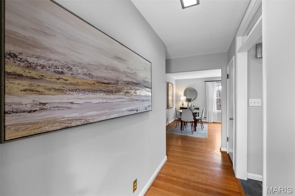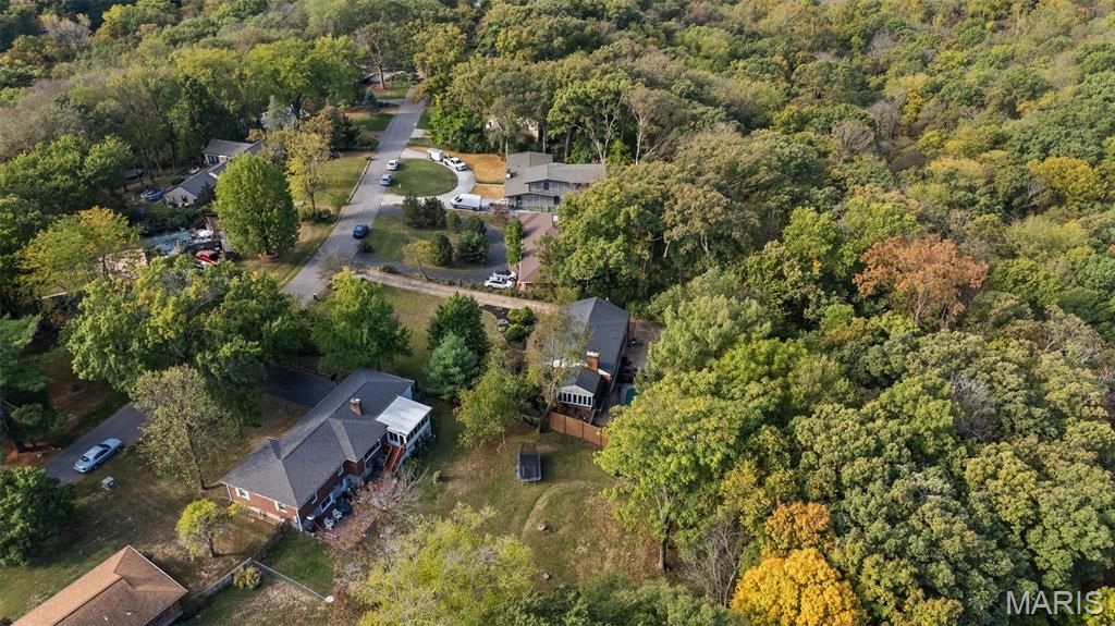 Returning with improvements. Best kept secret in Kirkwood! With 2123 square feet of living space you are bound to love this classic ranch with mid century modern influences in a well established neighborhood where homes rarely become available. This 4 bedroom 2.5 bath home has been lovingly cared for by one family since 1954. Residing on an acre of prime land on a private street, the back yard is an oasis that borders Dee Koestering Park. The updated kitchen is light and bright with modern appliances, quartz counters and abundant storage. Luxuriate around the fully private in-ground pool, and unwind after work in your luminous sunroom, and enjoy a fire. When cold weather sends you inside, simply turn on the gas fireplace in the living room for a toasty experience overlooking the woods where wildlife frolics. The main floor offers 3 large, bright bedrooms, 1.5 bathrooms, and a large living room with space for a dining table. The sunroom rounds out the main floor and has a garden feel that is both private and inviting. Downstairs guests will love their private suite with full bath and ample storage. A bonus room and tuck under garage completes the lower level. Located in a quiet corner of Kirkwood with easy access to charming shops, restaurants, and award-winning schools as well as major highways. This home combines location, comfort, convenience, and classic Kirkwood character in a very rare opportunity for the next homeowner. Please see the floorplan drawings for room dimensions