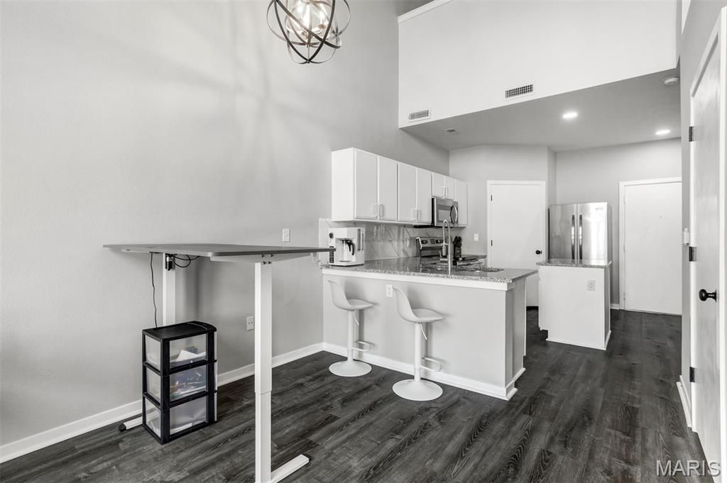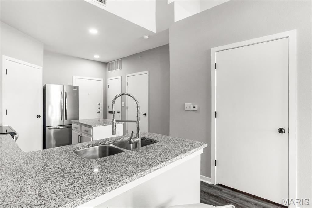 Exceptional condo in desirable Kirkwood area. Enter into a gorgeous open floor plan with high ceilings and tons of natural light from the huge statement window. Kitchen features custom white cabinets, tiled backsplash, solid surface countertops, stainless steel appliances, center island and breakfast bar. A convenient half bath is located just right off the kitchen area and don't forget to check out the built-in bar with wine fridge, tons of counter space and storage. The living room is spacious adding amazing architectural touches from the high ceilings, beams, stone accents and has doors leading to the balcony. Up the stairs you will find a large loft-style bedroom with an oversized closet. Also on this upper level is a nice-sized private bathroom with many updates and a personal laundry room for great convenience. Some bonus features that come with this condo include secure covered parking w/extra storage space, fitness center, elevators and a massive clubhouse. The clubhouse features a large entertaining area, technology/business space, full kitchen and dining areas. Enjoy being just steps from your favorite restaurants, shopping centers, markets and entertainment venues. Do not hesitate in making your appointment today to come see this condo, you will not be disappointed!