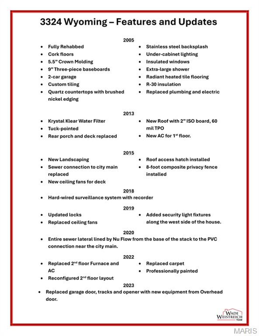 Welcome Home! What a gem. This amazing 4 bed 2.5 bath gorgeous home was completely rehabbed, renovated and meticulously maintained by the same owner for over 20 years. Just one look and you'll come to appreciate the care and detail that has gone into every inch of this beautiful property. On the main level you'll love the cork floors, open floor plan, spacious rooms, bedroom/office, laundry and gourmet kitchen. Crown molding, 9.5 inch baseboards throughout as well as too many canned lights to count. Kitchen features quartz countertops, natural maple cabinets with lower cabinet pullouts, under cabinet lighting and stainless steel backsplash. Upstairs boasts 3 large bedrooms including a very large primary with a huge bathroom and private deck overlooking the beautifully landscaped backyard. This wonderful home also features an over-sized two-car garage, 60 mil TPO roof, dual HVAC, whole home water filter, cold plasma air purifier and so, so much more. Dual HVAC with a 2-year old York system for the 2nd floor. Sewer lateral has been lined all the way to the city main. Just two short blocks from the heart of South Grand where you can enjoy amazing restaurants, unique shops and fantastic night life.